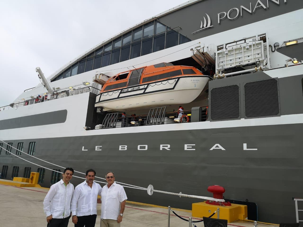El Le Boreal es un crucero dirigido al segmento de mercado de lujo y realiza este año su primer arribo del itinerario programado a Progreso, trasladando en esta ocasión a 220 pasajeros y 143 tripulantes.