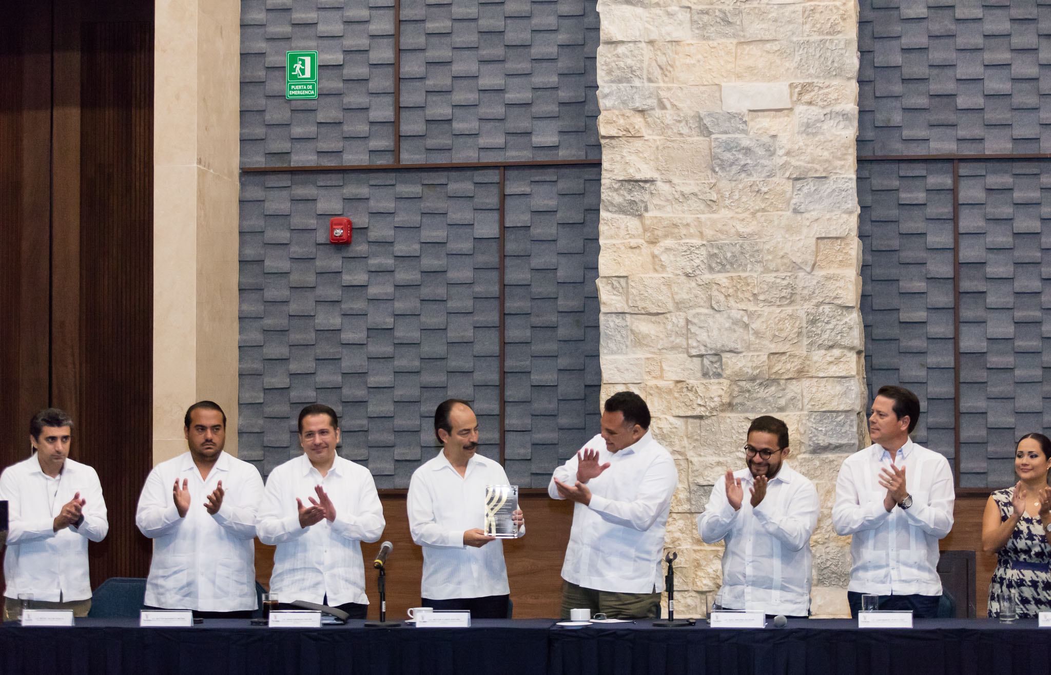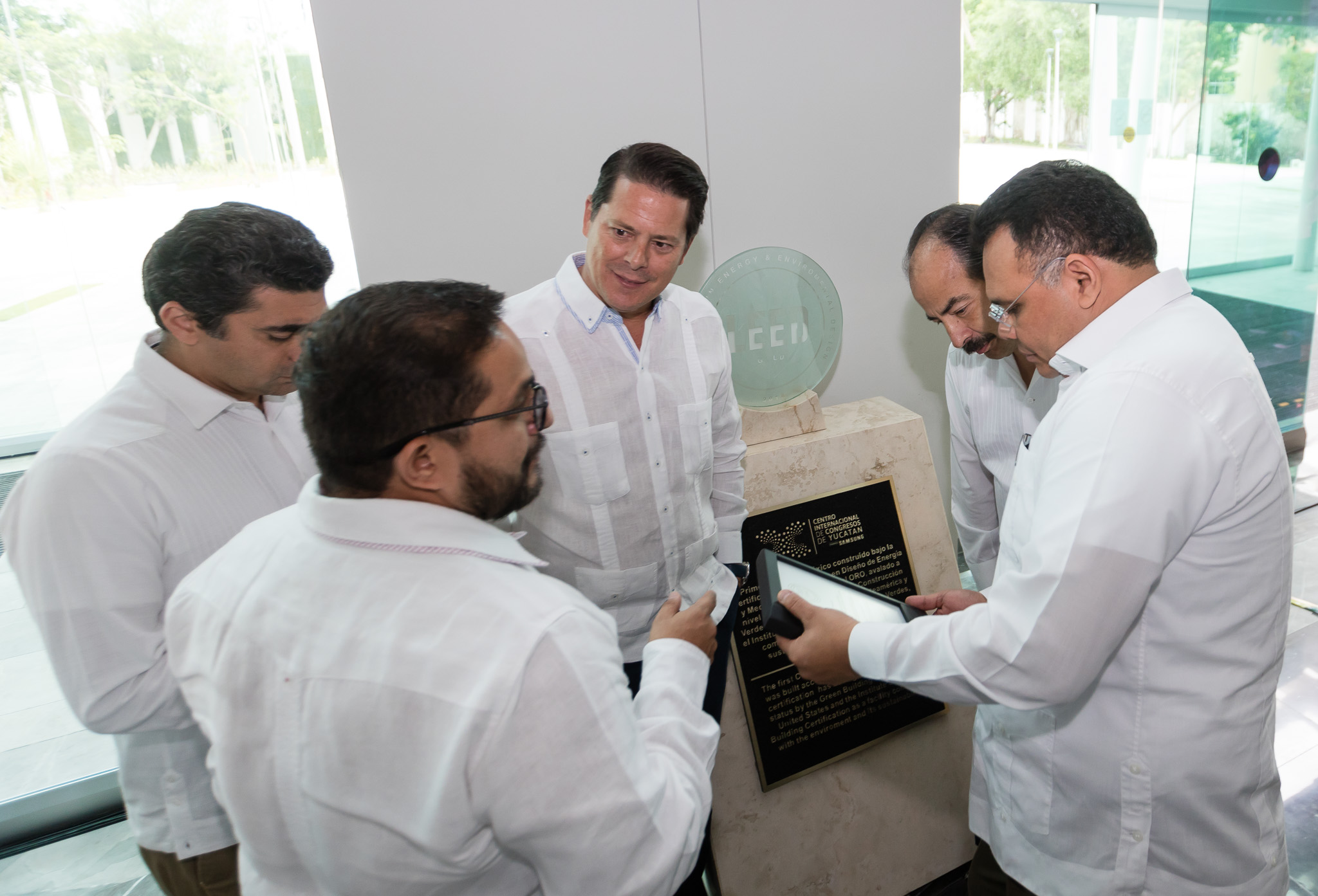Posteriormente, el Gobernador develó la placa conmemorativa de la certificación LEED Oro (Leadership in Energy & Environmental Design, por sus siglas en inglés) del CIC, lo que sitúa a este Centro como líder en diseño ambiental y lo vuelve un espacio más competitivo en el segmento de reuniones a nivel mundial.
