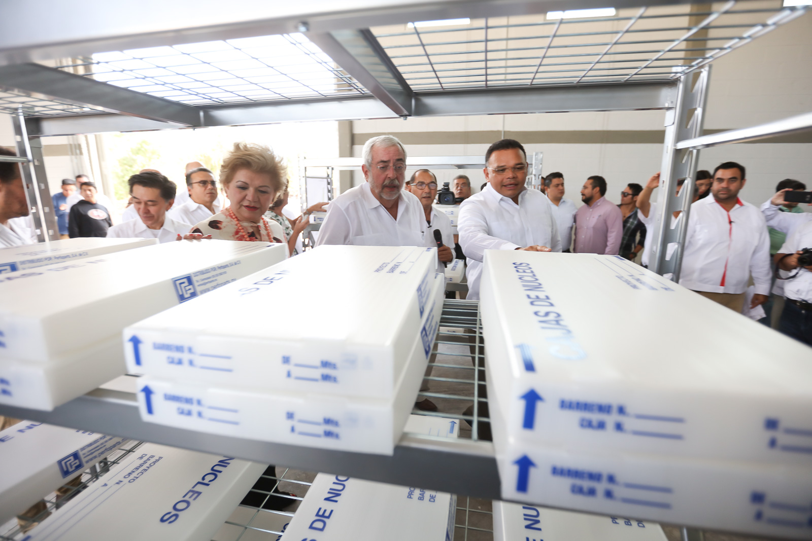 En ese lugar, que tuvo un costo de 2.5 millones de pesos y tendrá capacidad para albergar 35 mil cajas de muestras, el titular del Poder Ejecutivo constató un fragmento con 110 millones de años de antigüedad y que es parte de núcleos de tres metros cada uno que se resguardan ahí.