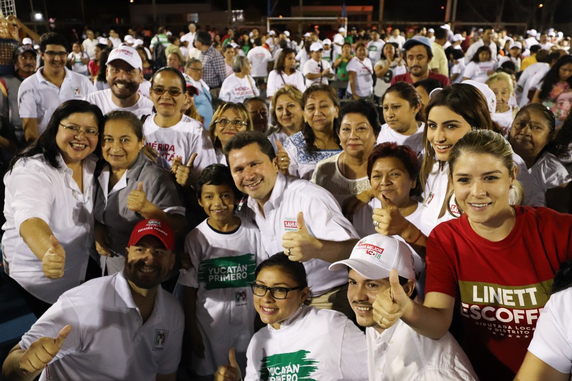 Con la enérgica porra de ¡Sahuí Gobernador! que ya suena por todo el territorio yucateco, Sahuí Rivero convocó a la ciudadanía a no bajar los ánimos, para consolidar juntos el proyecto con el que Gobierno y sociedad harán la mejor versión de Yucatán.