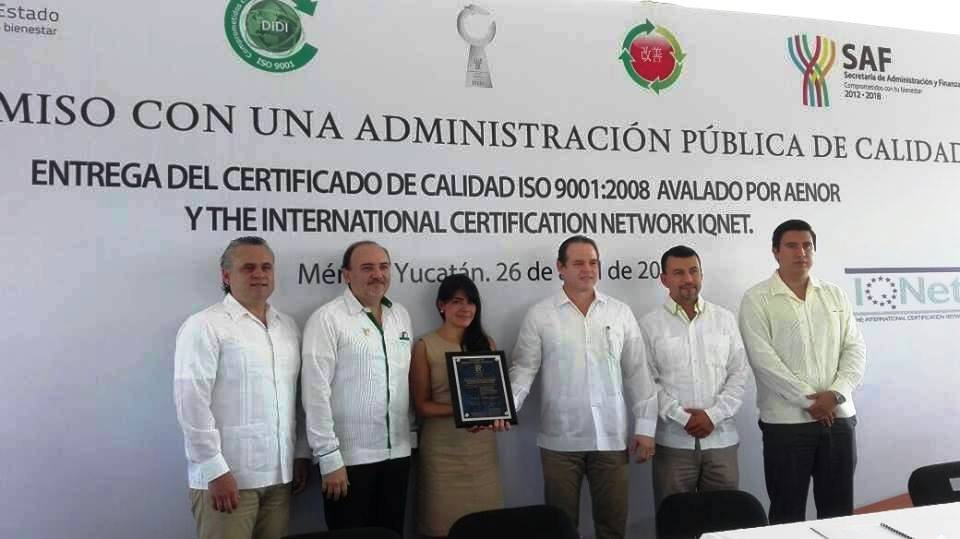 Mérida, Yucatán, 3 de febrero de 2018.- Por orientar y contribuir al crecimiento ordenado y eficaz en las dependencias, así como satisfacer a los usuarios de servicios de públicos, la Dirección de Innovación y Desarrollo Institucional (DIDI) de la Secretaría de Administración y Finanzas (SAF) mantuvo el distintivo de calidad ISO 9001:2008.