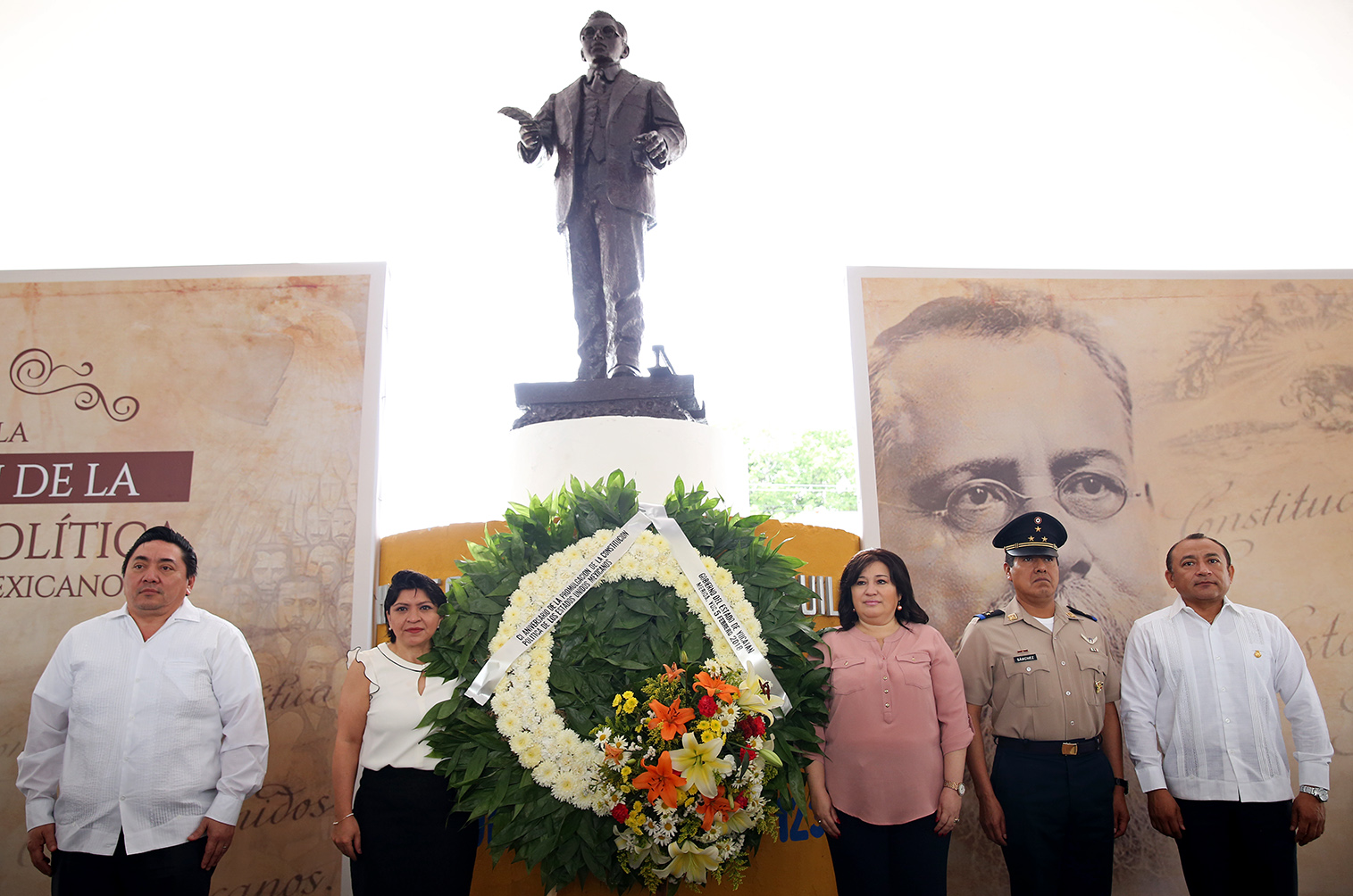 En representación del titular del Poder Ejecutivo, Rolando Zapata Bello, la secretaria General de Gobierno, Martha Góngora Sánchez, encabezó la ceremonia cívica celebrada en el parque Artículo 123 de Mérida, cuya oradora fue la diputada María del Rosario Díaz Góngora.