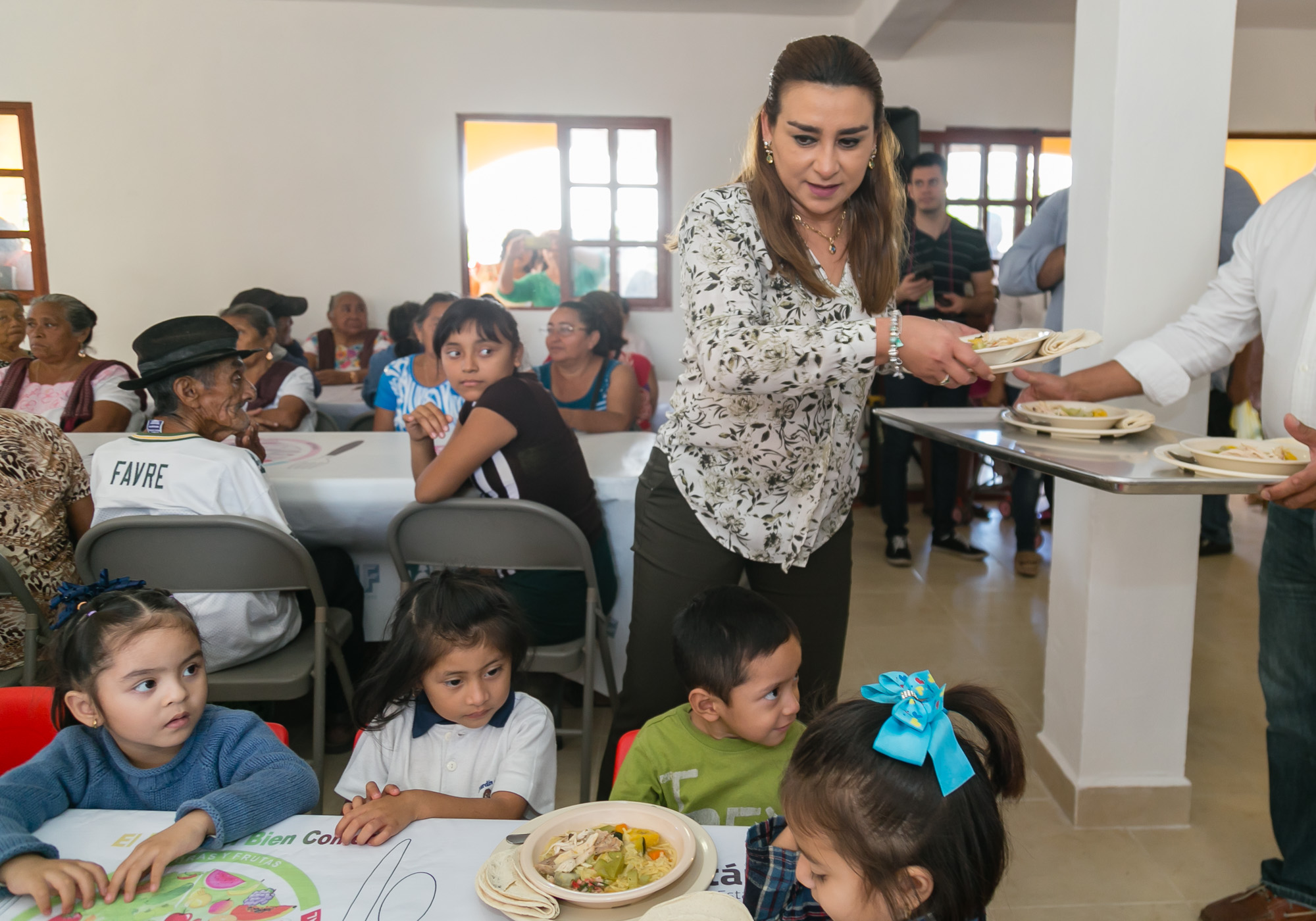 Acompañada del alcalde anfitrión, Warnel May Escobar, la presidenta del DIF municipal, María de los Ángeles Caro Sarabia destacó la importancia de los comedores comunitarios, ya que además de contribuir a la sana nutrición de las familias, sirven como una incubadora de proyectos sociales para mujeres y jóvenes.