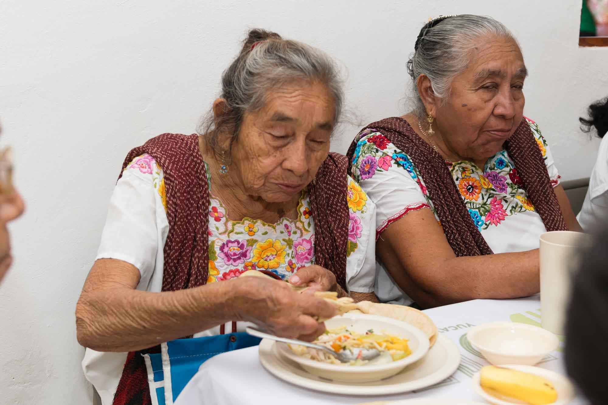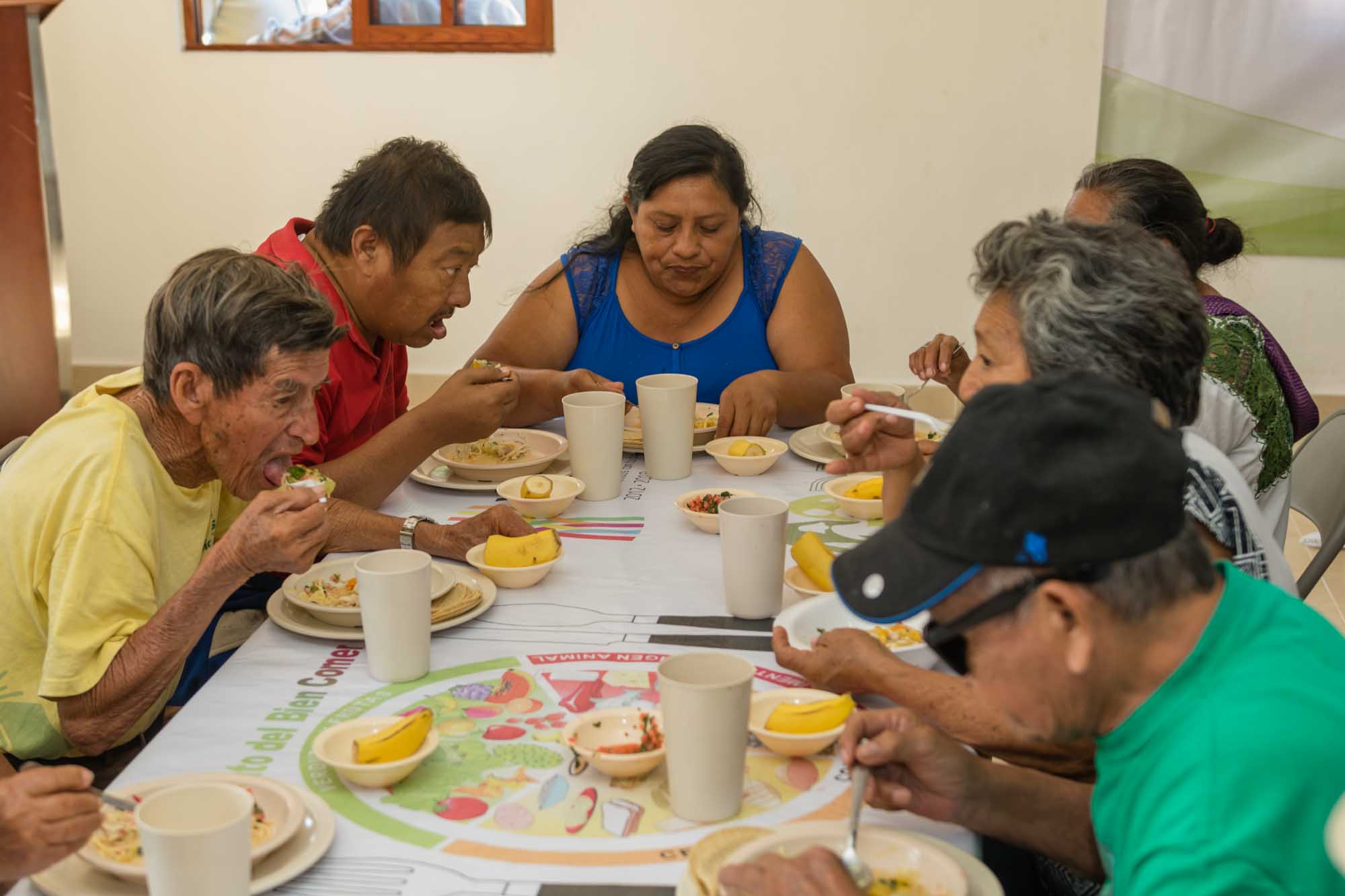 Luego de degustar el platillo del día, que consistió en puchero, agua de melón y plátano como postre, Amalia Chuc Caam y su hija Concepción Quijano Chuc reconocieron el esfuerzo y el apoyo que realizan las autoridades para acercar alimentos de calidad a los que lo requieren.