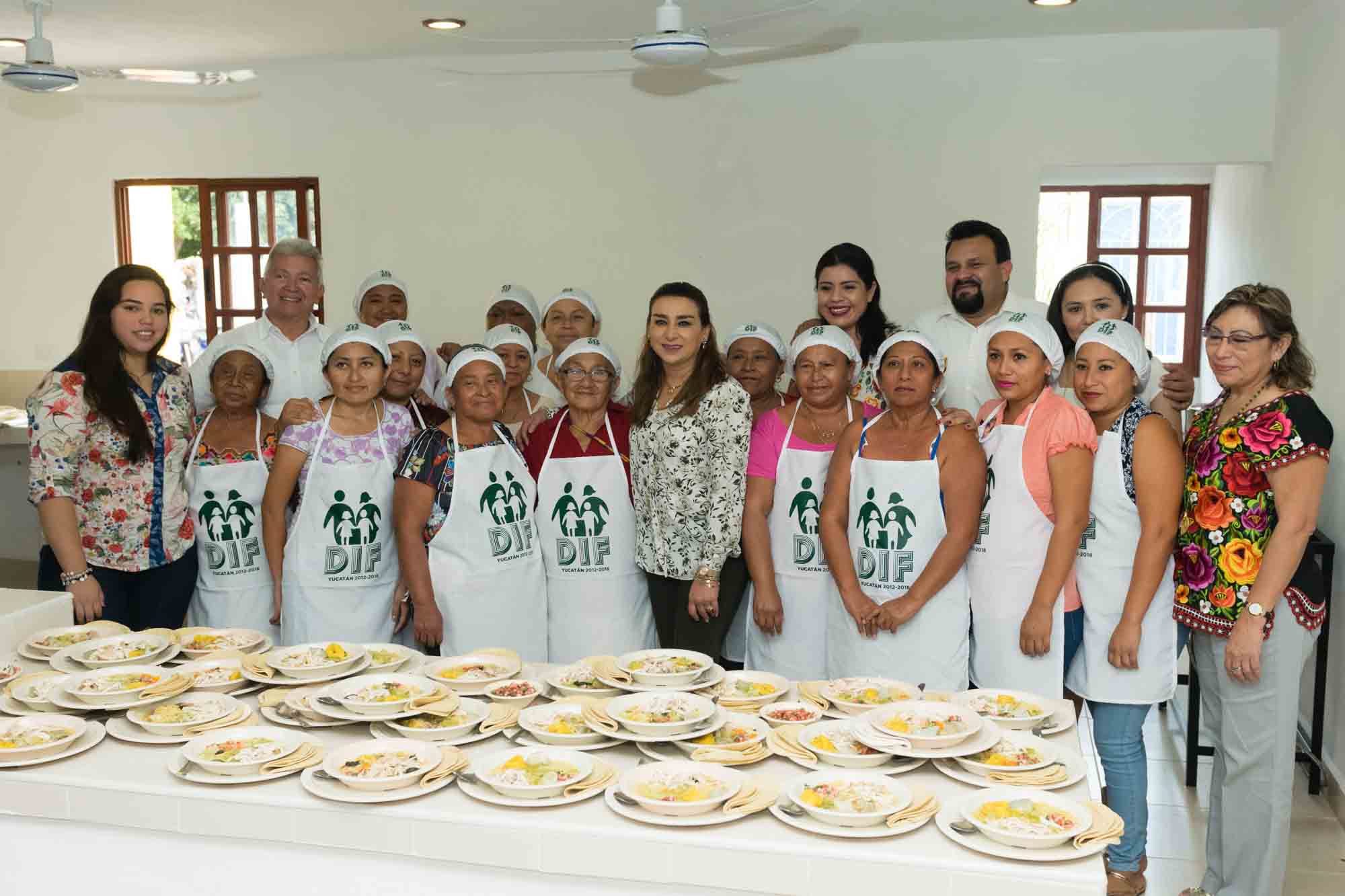 "Hoy cocinamos puchero. Venimos todas las 15 voluntarias desde las ocho para que esté todo listo a la hora de la comida, el personal del DIF aparte de proporcionarnos las ollas y utensilios, ya nos dijo que nos seguirá capacitando en nuevas recetas para ampliar el menú", expresó María Esther Couoh Gutiérrez, quien colabora como cocinera voluntaria del lugar.