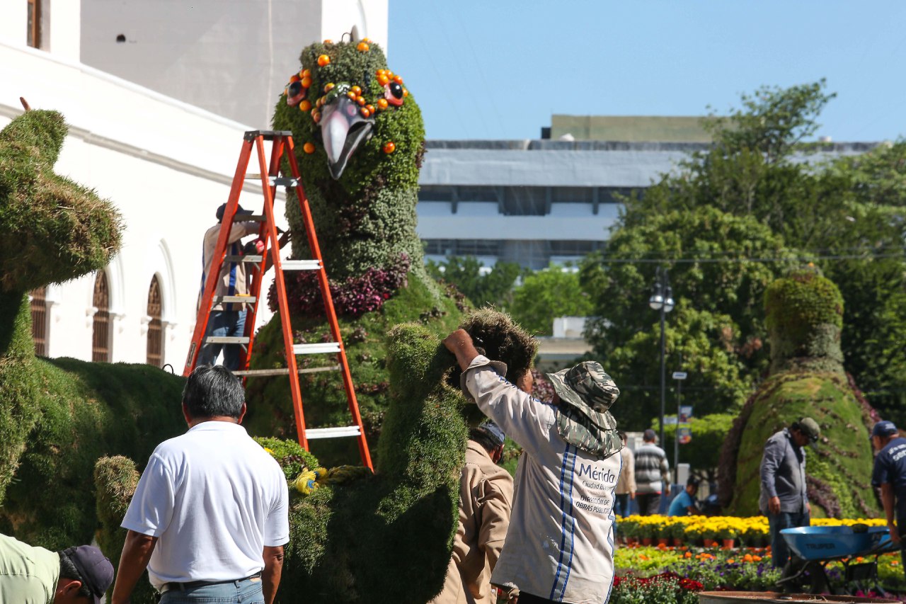 Como parte de su compromiso con el cuidado del medioambiente, el alcalde Renán Barrera Concha incluyó en esta ocasión un mensaje de respeto y cuidado hacia nuestra flora y fauna tradicionales, de manera que entre las esculturas realizadas con plantas y flores habrá jaguares, venados, pavos de monte y una serpiente.