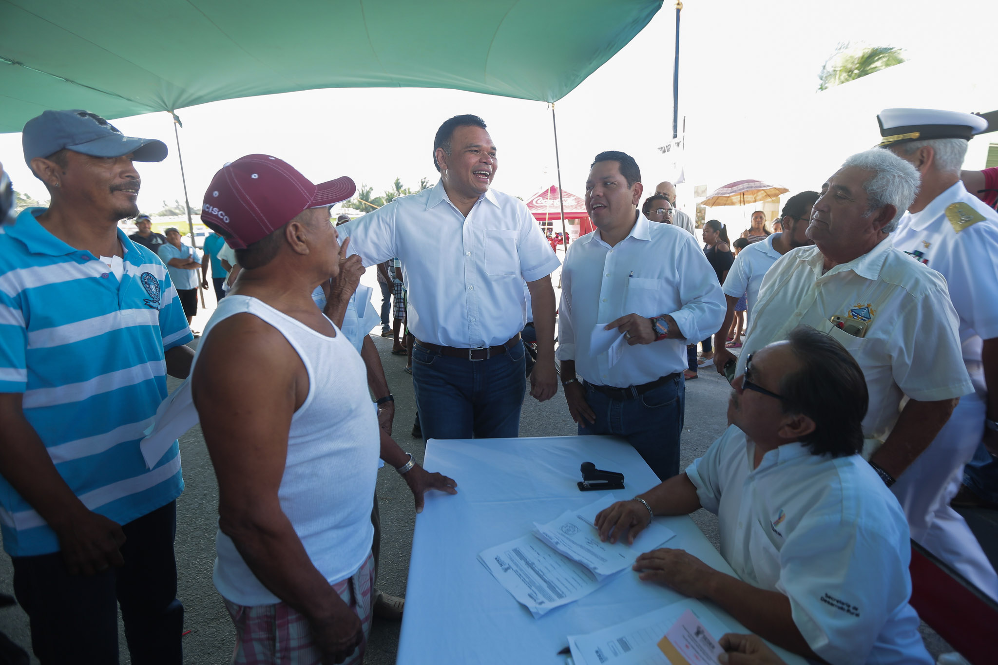 De visita en el puerto de Chelem, el Gobernador Rolando Zapata Bello entregó los primeros apoyos, que de manera simultánea se otorgaron en otros 20 puntos de la costa y que representan, a lo largo de los dos meses que se restringe la actividad, una inversión de 33 millones de pesos.