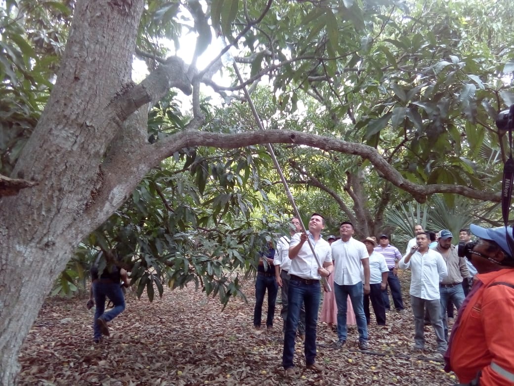 Esta campaña inició en una unidad productiva de mango, donde se dieron cita el coordinador del Cesvy para la zona poniente, Eric Sánchez, y el director de Desarrollo Rural de la comuna, Pedro Isaac Dzul Chan, así como productores y funcionarios tanto estatales como municipales.