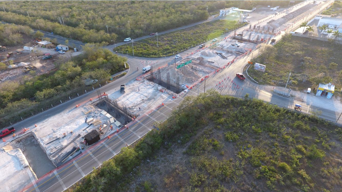 A la fecha se ha llevado a cabo la construcción de 5 zapatas (de un total de 8) y se han construido 16 columnas (de un total de 36) de concreto reforzado. Actualmente se trabaja en la formación de las rampas de acceso a la estructura y en las vialidades laterales.