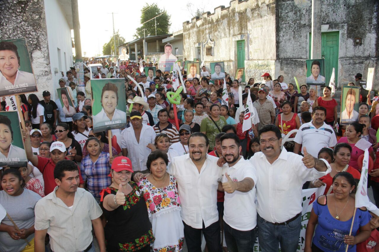 Canul Pérez también caminó las calles del municipio de Mama en compañía de los candidatos a la alcaldía y a la diputación local por el XIII distrito, María Inés Pacheco Poot y Luis Borjas, respectivamente, y del presidente del CDE del PRI Carlos Sobrino Argáez.