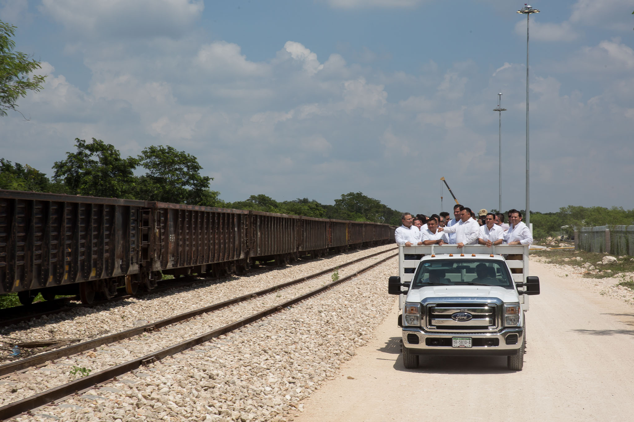 Explicó que aún se encuentra en marcha la vía que conecta el COF con la zona industrial de Hunucmá, que comprende 15.7 kilómetros, la cual ahora presenta un avance del 80 por ciento, pues ya está listo todo el tramo de terracería y sólo falta colocar los durmientes y el riel.