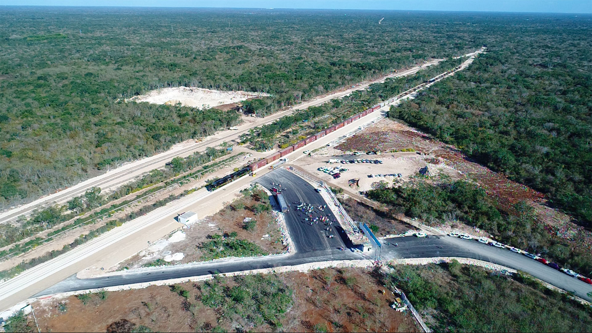 “Las vías ferroviarias tienen una longitud de más de cinco kilómetros, sumando las cinco vías que se construyen en este patio de maniobras. Ya podemos ver la infraestructura con la que cuenta el COF, pues desde el entronque con la antigua carretera Mérida-Campeche que es el acceso, se tiene un camino nuevo pavimentado de siete metros de ancho y 1.2 kilómetros de longitud”, puntualizó.