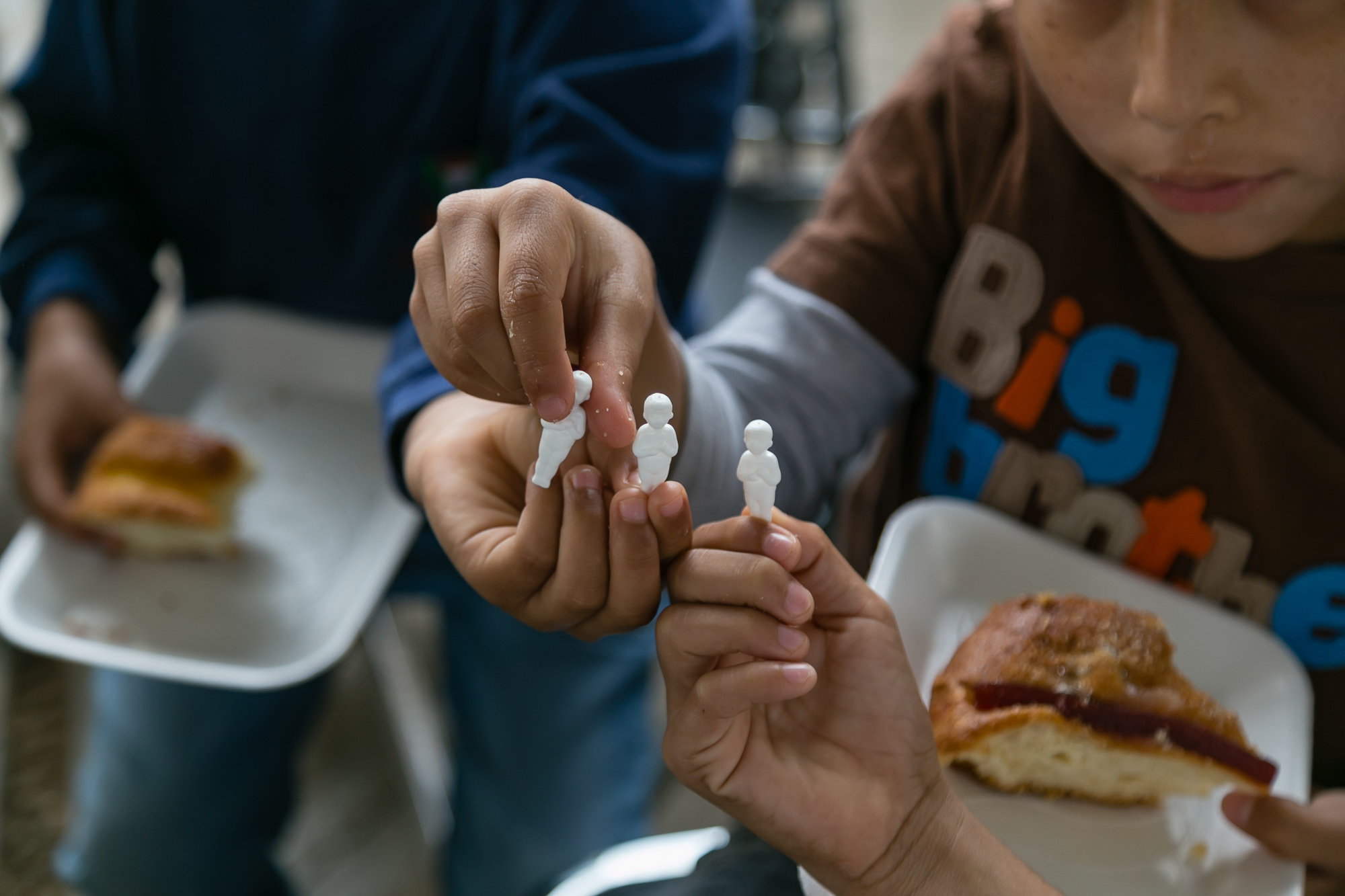 Como parte de las actividades, las y los infantes cantaron temas musicales de Tatiana como “Arre borriquito”, “Jingle bells” y “Los reyes magos”, al tiempo que otros jugaban, corrían y se emocionaban al ver a quiénes les salía el muñequito de la rosca.