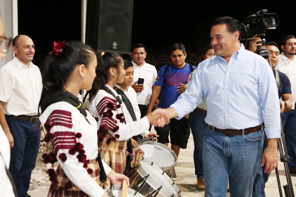 A la entrega del techado acudieron también Loreto Villanueva Trujillo, secretaria de Educación; José Luis Martínez Semerena, director de Desarrollo Social y José Collado Soberanis, director de Servicios Públicos Municipales.