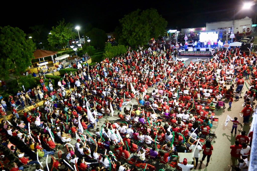 Conkal, Yucatán, 27 de junio de 2018.- En el día 89 de campaña, la candidata a diputada local por el IX Distrito, Lila Frías, asistió al cierre de campaña de la candidata a presidenta municipal, Hiselle Díaz del Castillo, ante numerosa asistencia que se reunió frente al parque principal de esta comunidad para respaldar este proyecto.