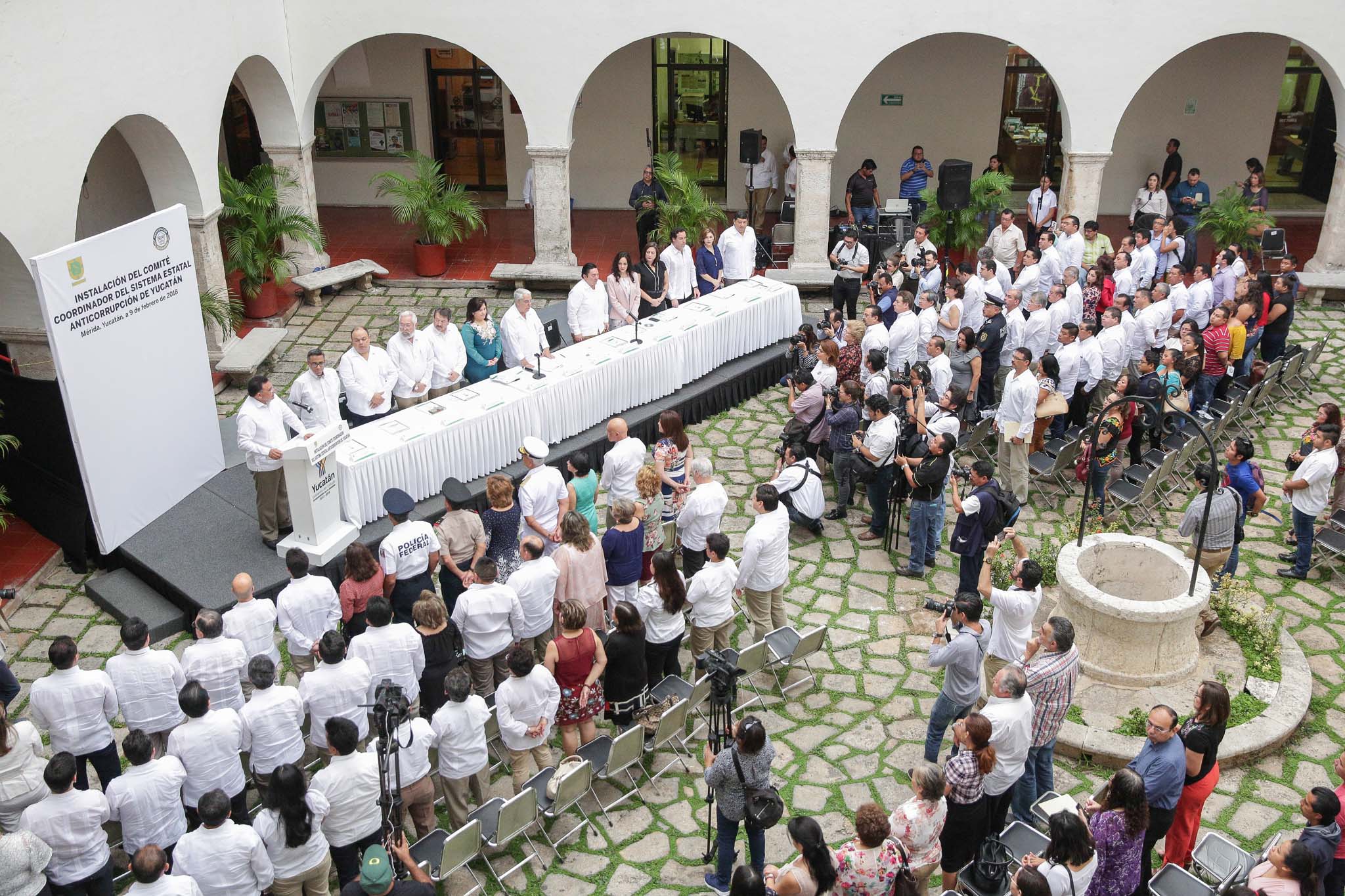 Durante la instalación del Comité Coordinador del Sistema Estatal Anticorrupción de Yucatán, el titular del Poder Ejecutivo convocó a los funcionarios a comprender el sentido profundo de lo que significa tener la responsabilidad de manejar recursos, para actuar con estricto apego a la ley y sancionar a aquellos que no la cumplan.