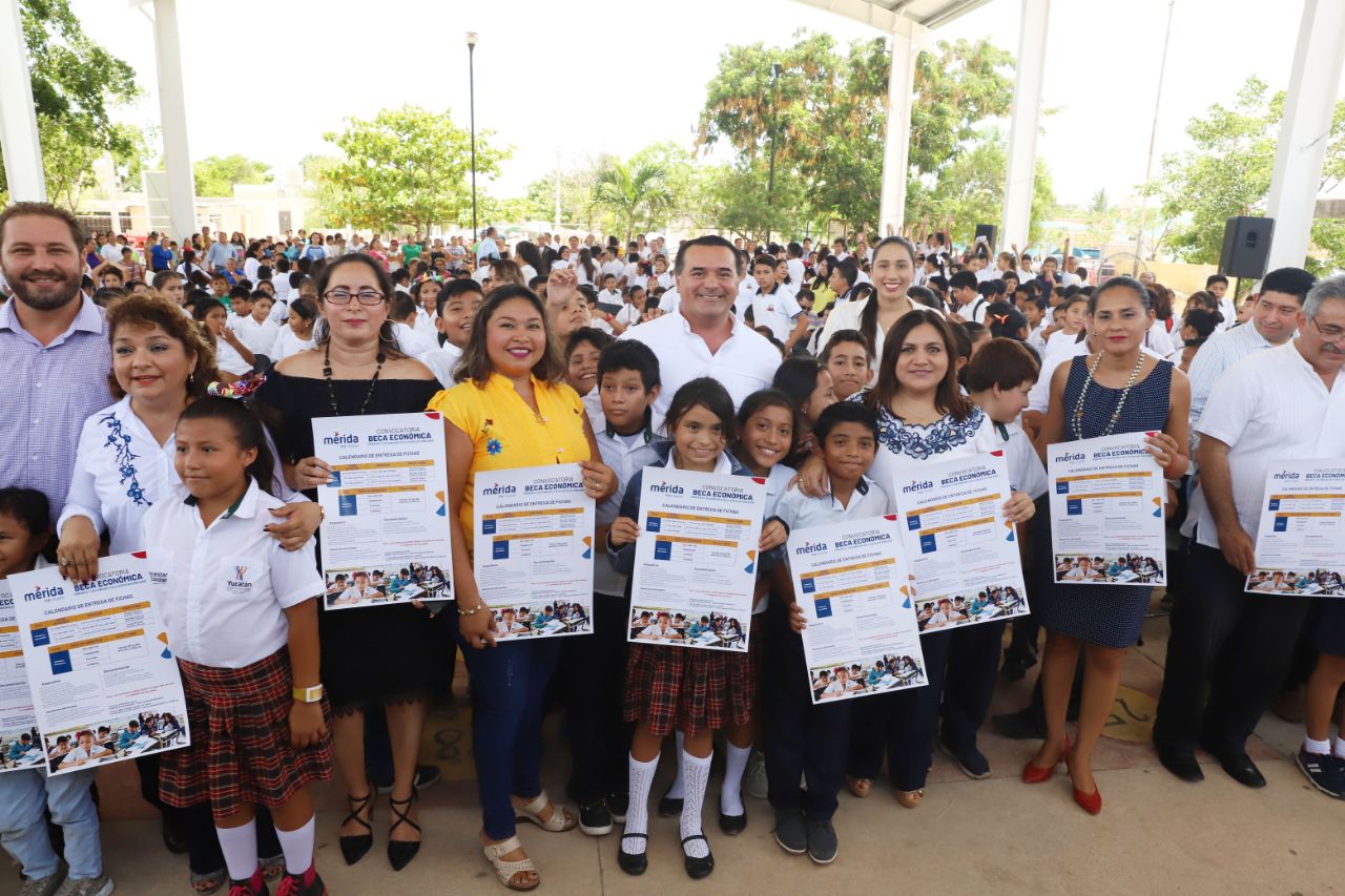 Mérida, 17 de junio de 2019. Como parte de su apoyo constante a la educación, con mejoras a la infraestructura escolar y mayores oportunidades para los estudiantes del municipio, el alcalde Renán Barrera Concha dio a conocer que para el período 2019-2020, el Ayuntamiento entregará 1,580 nuevas becas, de las cuales 1,000 serán para secundaria y 580 para primaria.