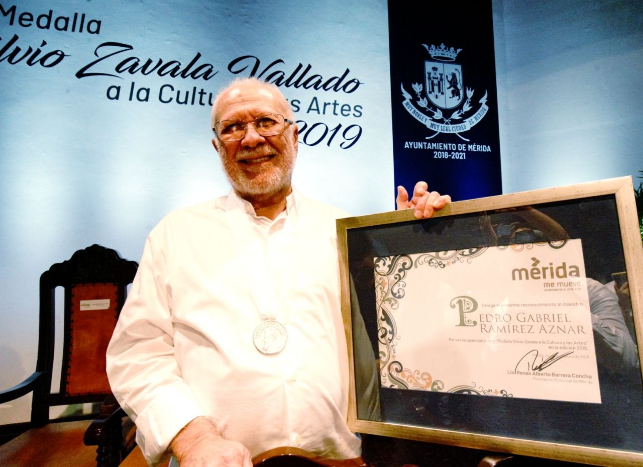 En sesión solemne de hoy, el Ayuntamiento de Mérida entregó la medalla “Silvio Zavala Vallado” al maestro Gabriel Ramírez Aznar, en reconocimiento a su obra artística, valorada a nivel mundial, y con la que ha contribuido a transformar la concepción del arte contemporáneo en el país.