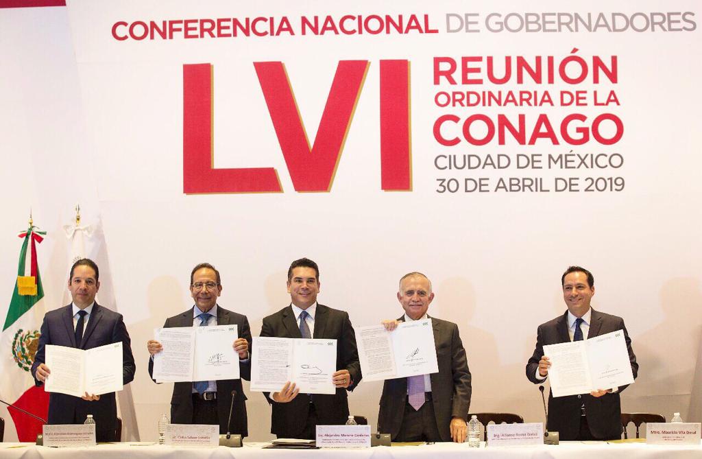 Ciudad de México, 30 de abril de 2019.- El Gobernador Mauricio Vila Dosal firmó el Acuerdo para el Diálogo Social y el Fortalecimiento de la Paz Laboral que la Conferencia Nacional de Gobernadores (Conago) y el Consejo Coordinador Empresarial (CCE) Nacional suscribieron en el marco de la 56 Reunión Ordinaria de los gobernadores del país.