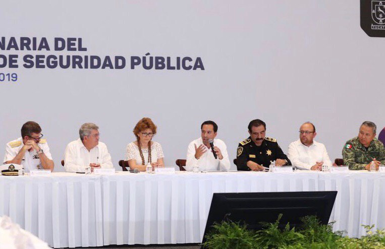 Mérida, Yucatán, 21 de junio de 2019.- Fortalecer el trabajo de coordinación entre las corporaciones policíacas e instituciones de procuración e impartición de justicia, así como mantener una estrecha colaboración con presidentes municipales, cámaras empresariales y sociedad civil para prevenir y combatir el delito, fueron los temas principales que se abordaron durante la instalación del Consejo Estatal de Seguridad Pública, que encabezó el Gobernador Mauricio Vila Dosal.