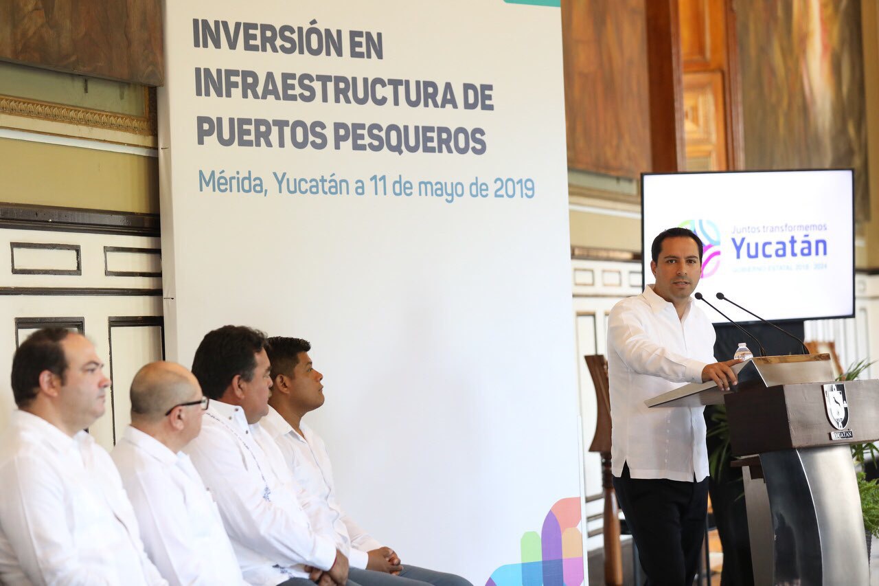 Desde el salón de la Historia de la sede del Poder Ejecutivo, acompañado por el director de la API, Agustín Arroyo Toledo, el Gobernador también solicitó a las autoridades federales que se puedan llevar a cabo los estudios necesarios para poder asignar una inversión a los puertos de Celestún y El Cuyo, toda vez que ambos necesitan de mantenimiento inmediato para su operación y que, por sus condiciones actuales, representan un riesgo para la seguridad de los propios pescadores.