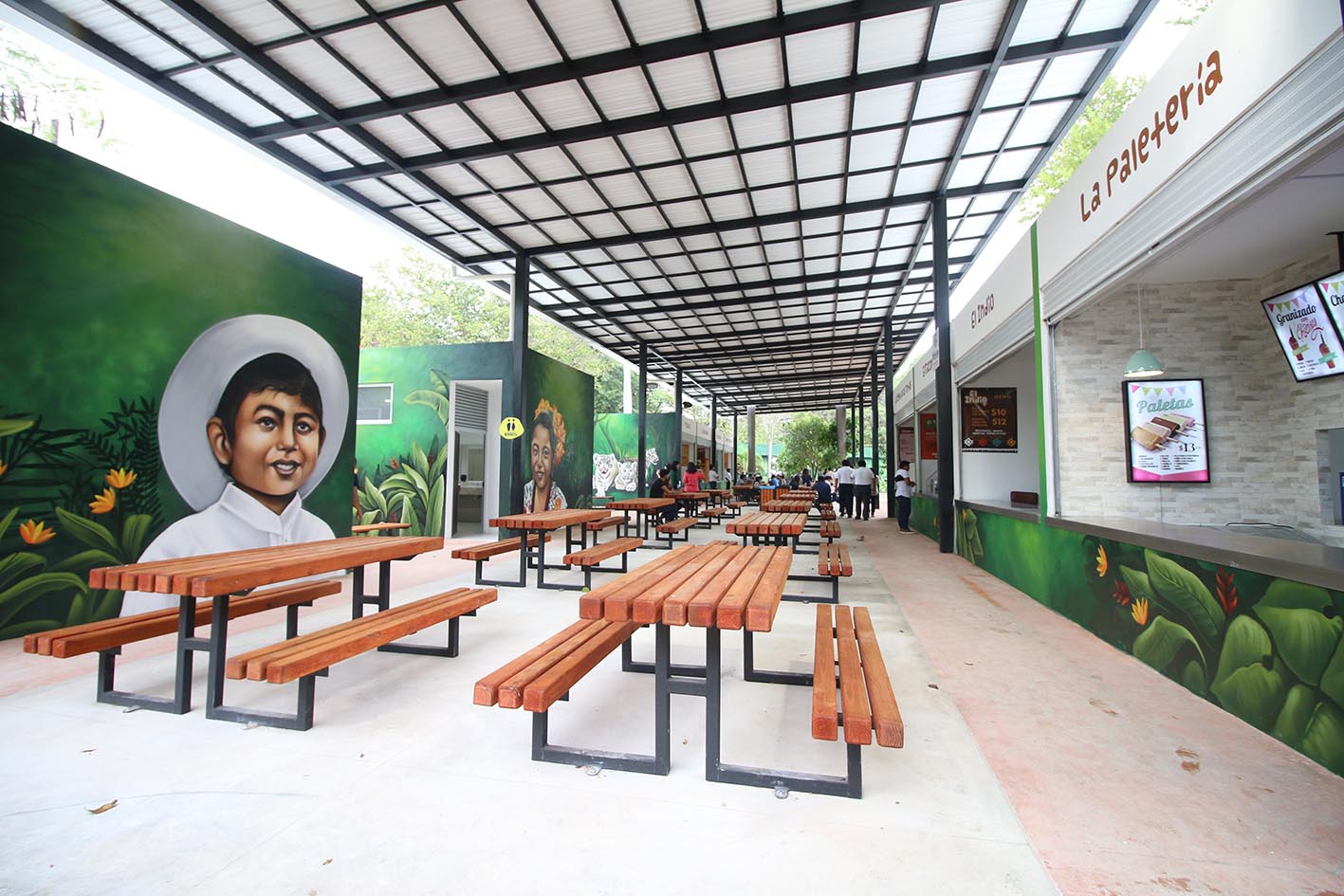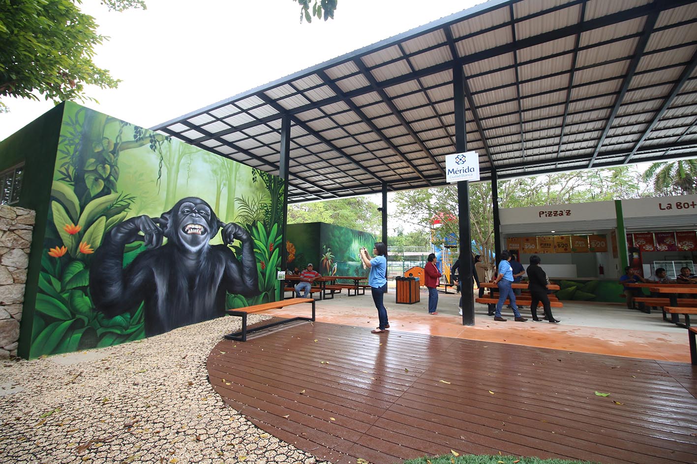 Los trabajos incluyeron 36 módulos metálicos nuevos, más 15 de cemento, más los 8 del Comedor Verde, que hacen un total de 59 nuevos espacios para los oferentes. Se instaló audio en la estación del tren con sonidos de la selva y mensajes alusivos al zoológico, se pintaron murales de animales y paisajes naturales; se instalaron nuevos juegos infantiles.