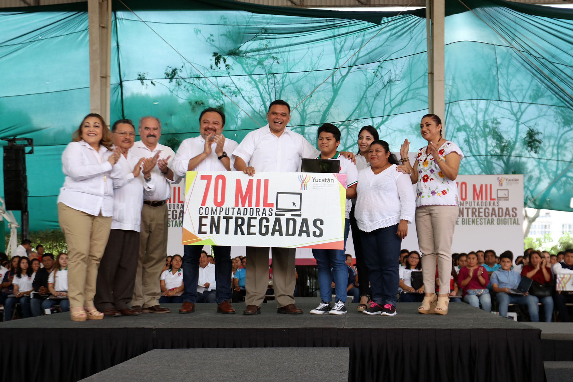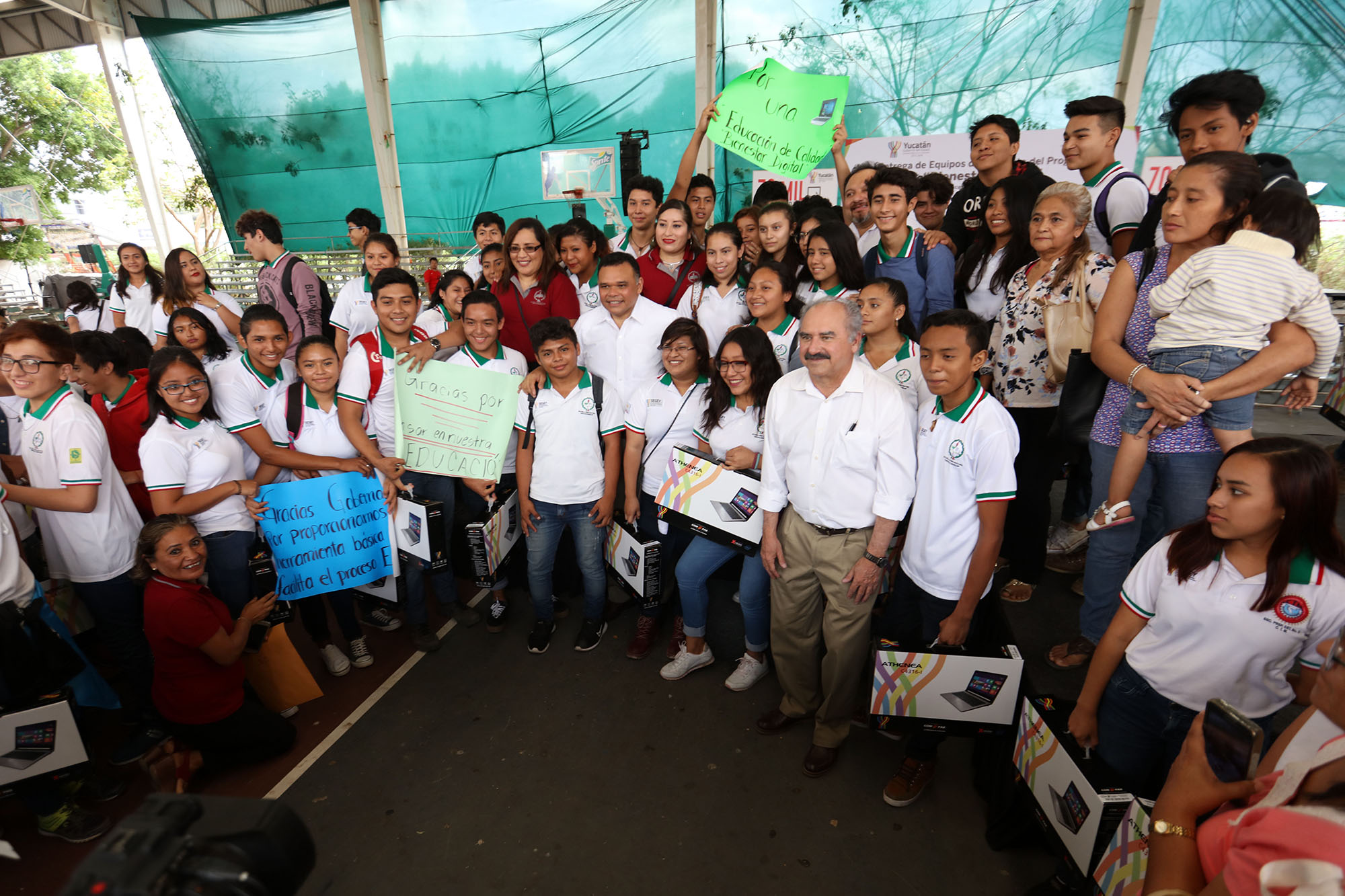 En esta ocasión se dotó de equipos a las Preparatorias Estatales “Serapio Rendón” con 177, “General Salvador Alvarado” 216, “CTM” 532, “Agustín Franco Villanueva” 85, “Alianza de Camioneros” 218, “Eligio Ancona” 204, “Carlos Castillo Peraza” 450, “Rubén H. Rodríguez Moguel” 193, todas de Mérida. Mientras que en Cansahcab, se otorgó 162 a la “Víctor J. Manzanilla Jiménez”.