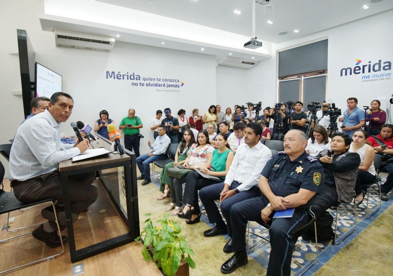 En la rueda de prensa estuvo presente también Gerardo Acevedo Macari, director de Gobernación; así como los titulares de Desarrollo Sustentable, Eugenia Correa Arce y de la Policía Municipal de Mérida, Mario Arturo Romero Escalante.