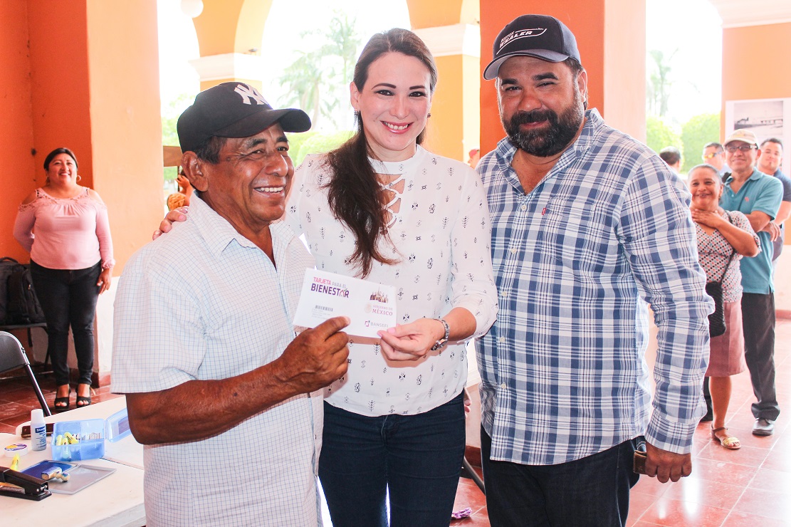 Motul, Yucatán a 25 de abril de 2019.- Con el objetivo de contribuir con el bienestar de las mujeres y los hombres del campo e impulsar el desarrollo rural, el Presidente Municipal de Motul, Roger Aguilar Arroyo acompañado de la Delegada Regional del Gobierno Federal, Mariana Cruz Pool realizaron la entrega de las tarjetas bienestar del programa federal “Sembrando vidas”.