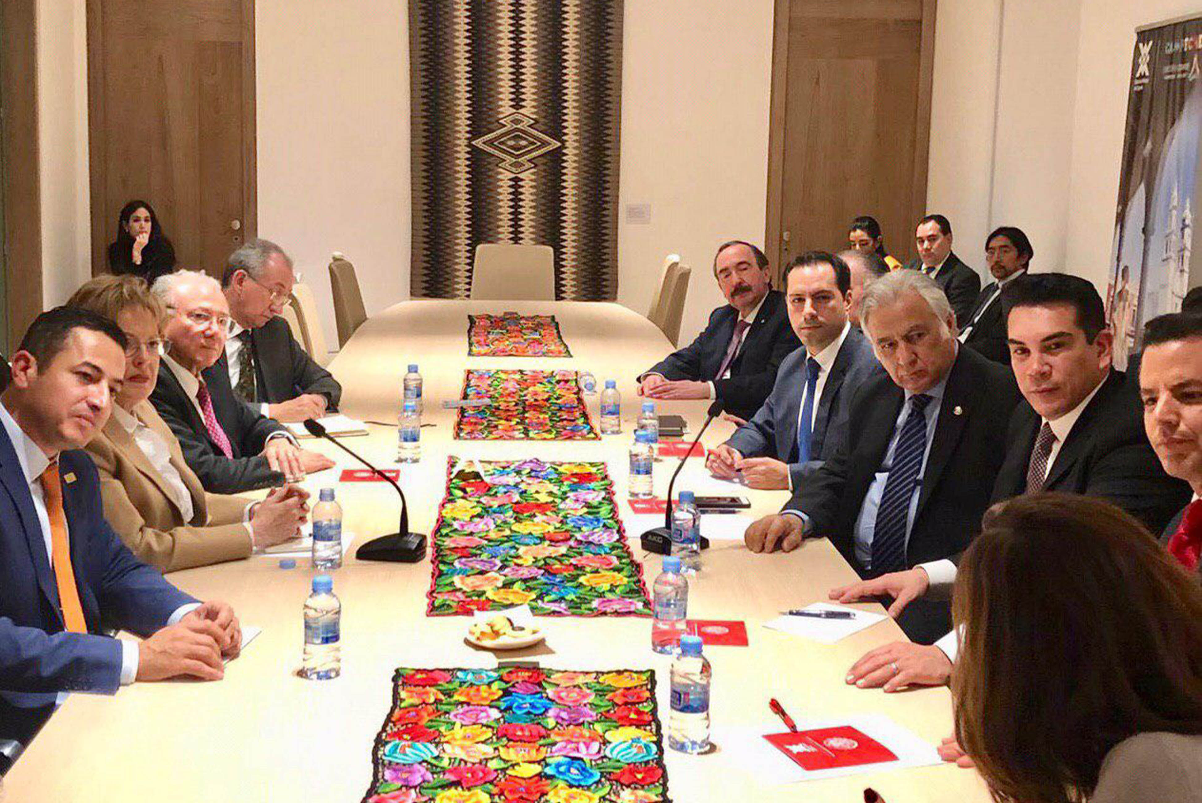 Al iniciar su visita a la capital española previo a participar en la Feria Internacional de Turismo (FITUR) 2019, el mandatario yucateco sostuvo un encuentro con funcionarios de la Sectur, encabezados por Torruco Marqués, y la diplomática mexicana, así como con los Gobernadores de Campeche, Alejandro Moreno Cárdenas y Oaxaca, Alejandro Murat Hinojosa.