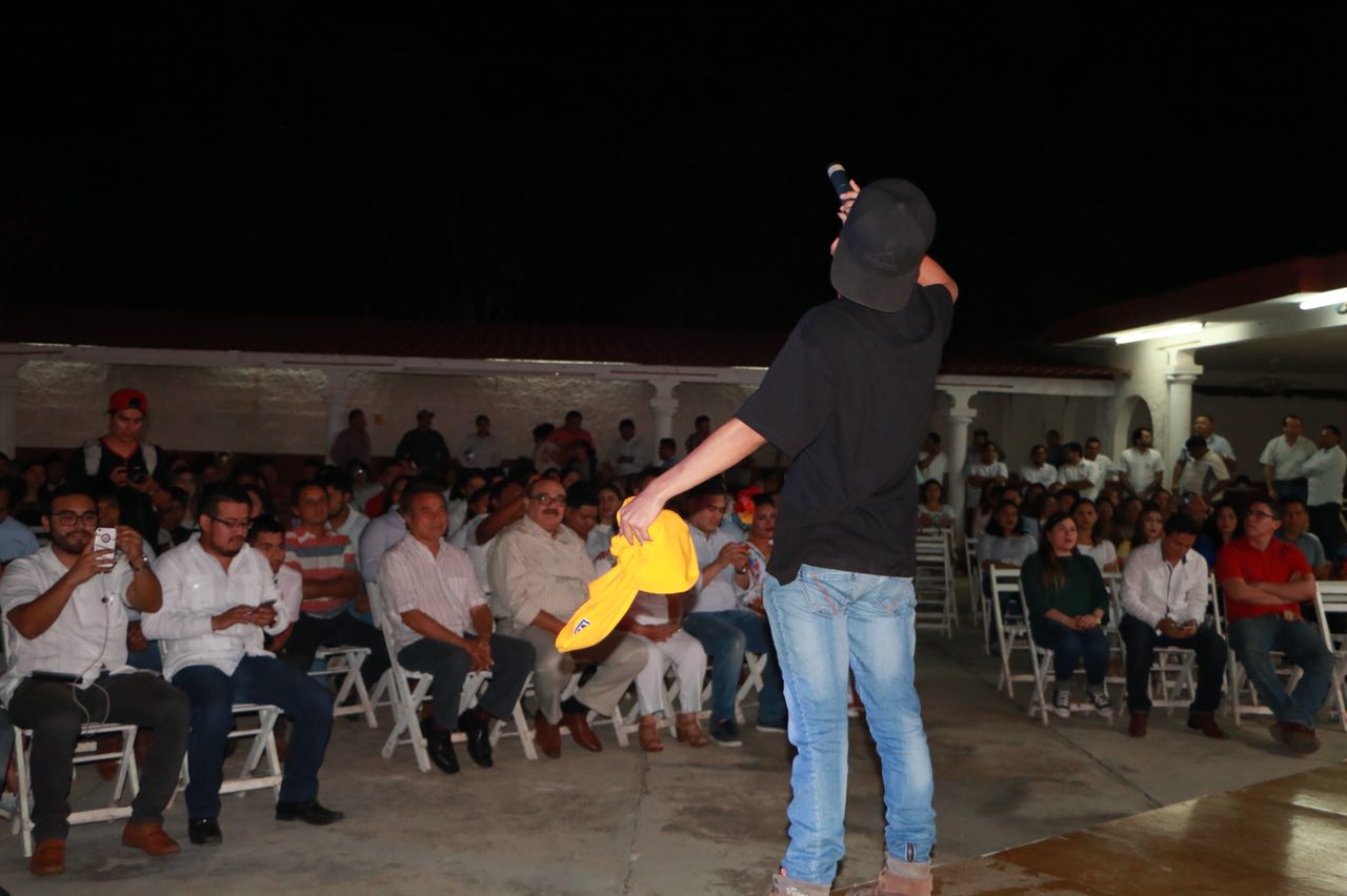 En reunión con la militancia en Tekax, en un evento denominado "¿Cómo rayos apoyamos al talento yucateco?", en el que hubo una exhibición de trova, jarana, rap y arte urbano, a cargo de jóvenes de varios municipios, el precandidato respondió que hay dos vías: gestionar más presupuesto y eliminar la burocracia, a fin de que lleguen más apoyos y de manera directa.
