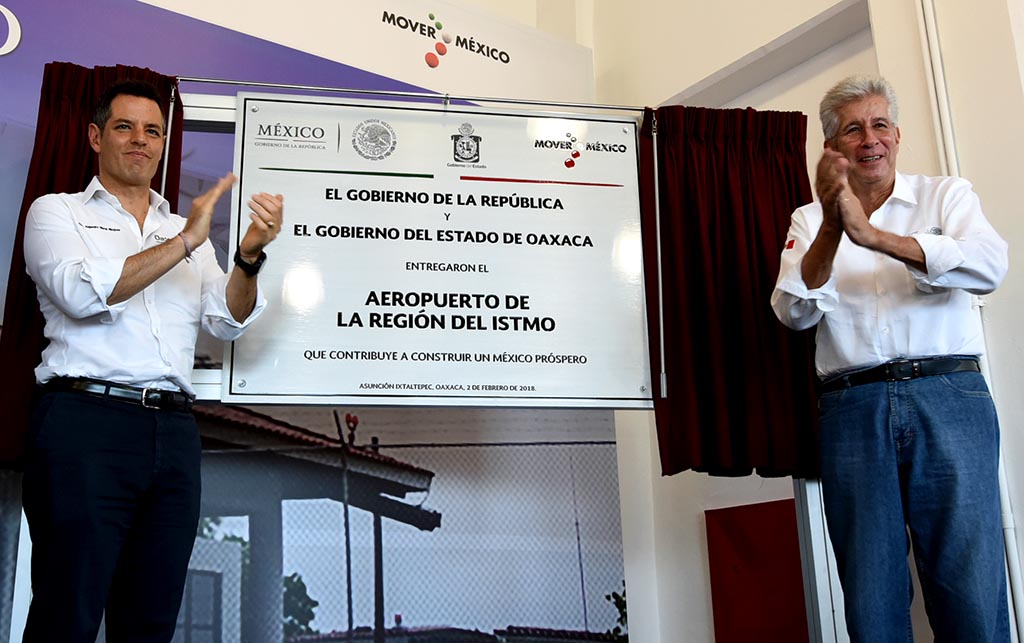 El secretario de Comunicaciones y Transportes, Gerardo Ruiz Esparza, inauguró el Aeropuerto de Ixtepec y los puentes vehiculares de “Ixtaltepec”, “La Ventosa” y “Malayengo II” que fueron destruidos por los sismos del pasado septiembre, en la zona del Istmo de Tehuantepec, Oaxaca, lo que refleja la solidaridad del Gobierno Federal con las comunidades afectadas y se traduce en un beneficio para que la vida vuelva a la normalidad en el estado.