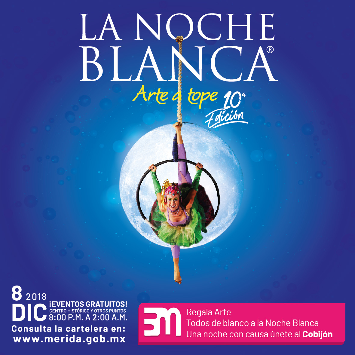 Los horarios, sedes y la programación completa de los eventos se puede consultar y descargar en www.merida.gob.mx/nocheblanca.