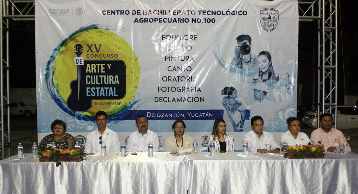 Dzidzantún, Yucatán, 1 de diciembre de 2018.- Más de 140 alumnos de la Unidad de Educación Media Superior Tecnológica Agropecuaria y Ciencias del Mar (UEMSTAyCM) participaron en el XV Concurso de Arte y Cultura Estatal, que inauguró la jefa del Departamento de Educación y Fomento Artístico de la Secretaría de la Cultura y las Artes (Sedeculta), la tarde del viernes en este municipio.