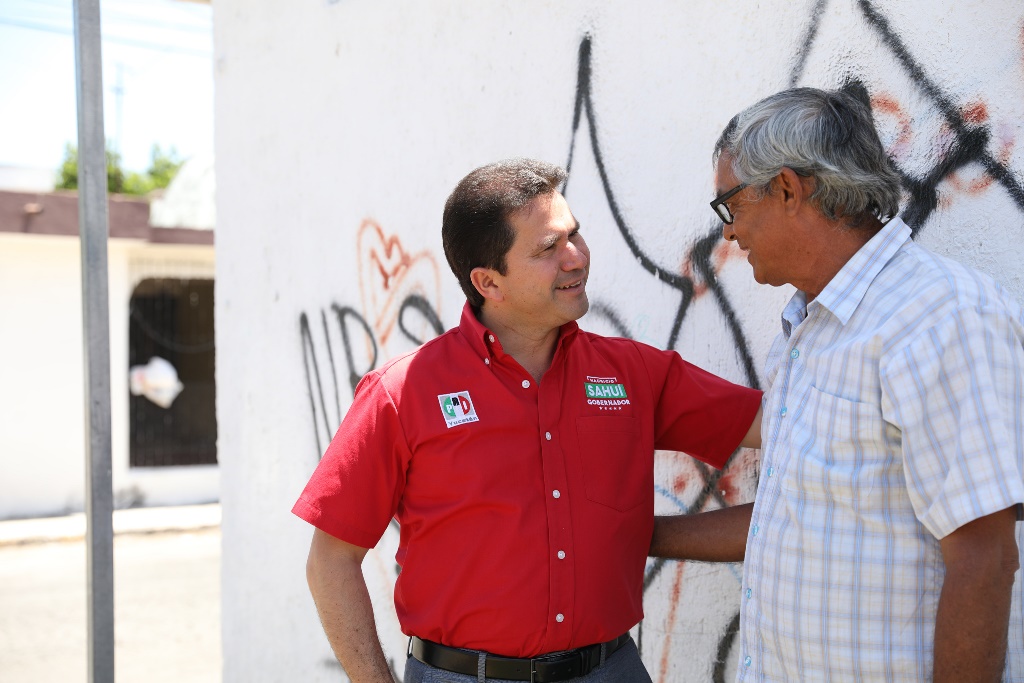 Con el candidato del PRI, PVEM y Panal a la gubernatura del estado, Mauricio Sahuí Rivero, recorrió algunas calles de la zona y le compartió las principales tareas que realizan además de pedirle que no se baje la guardia en materia de seguridad.