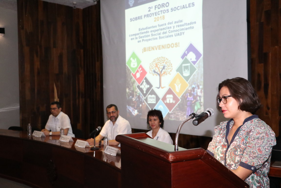 Con el objetivo de generar un espacio de análisis y reflexión para estudiantes en torno al aprendizaje en escenarios reales y permitiendo visibilizar los alcances en su formación integral al participar en dichos proyectos sociales, se realizó el 2° Foro Proyectos Sociales 2018 “Estudiantes fuera del aula: compartiendo experiencias y resultados en la Gestión Social del Conocimiento en Proyectos Sociales UADY”.