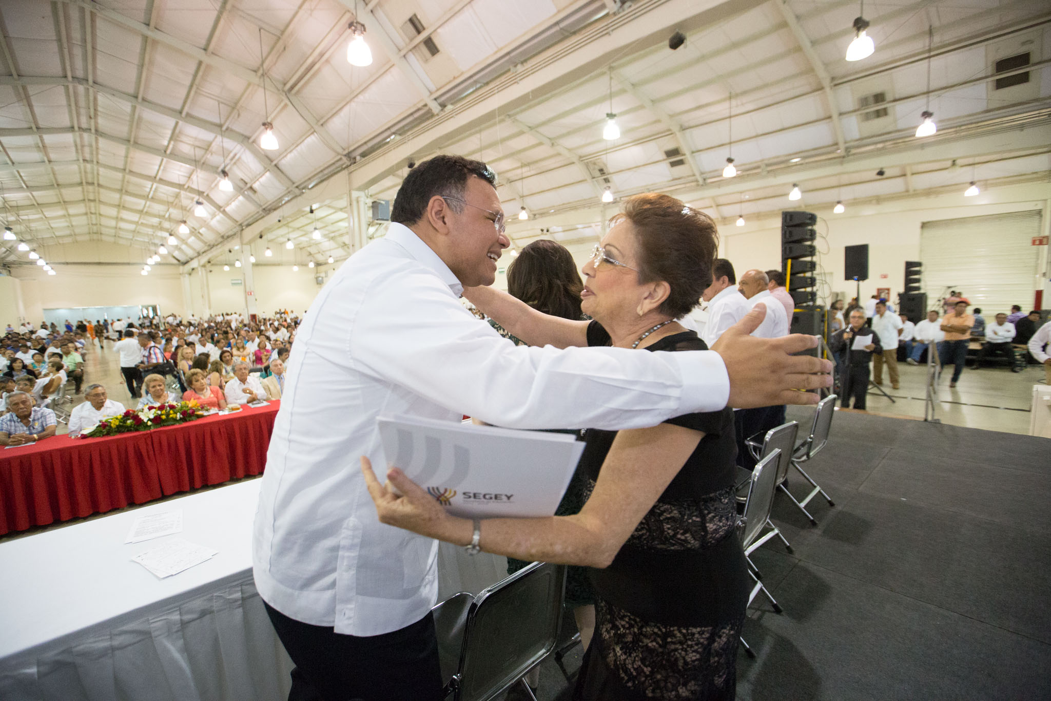 “Yucatán es también referente de crecimiento económico y de igualdad de oportunidades, y se debe a que cada uno, sociedad y Gobierno, hacen la parte que les corresponde. Y, en este contexto, las maestras y los maestros están cumpliendo cabalmente con sus responsabilidades”, acotó ante casi mil profesoras y profesores.
