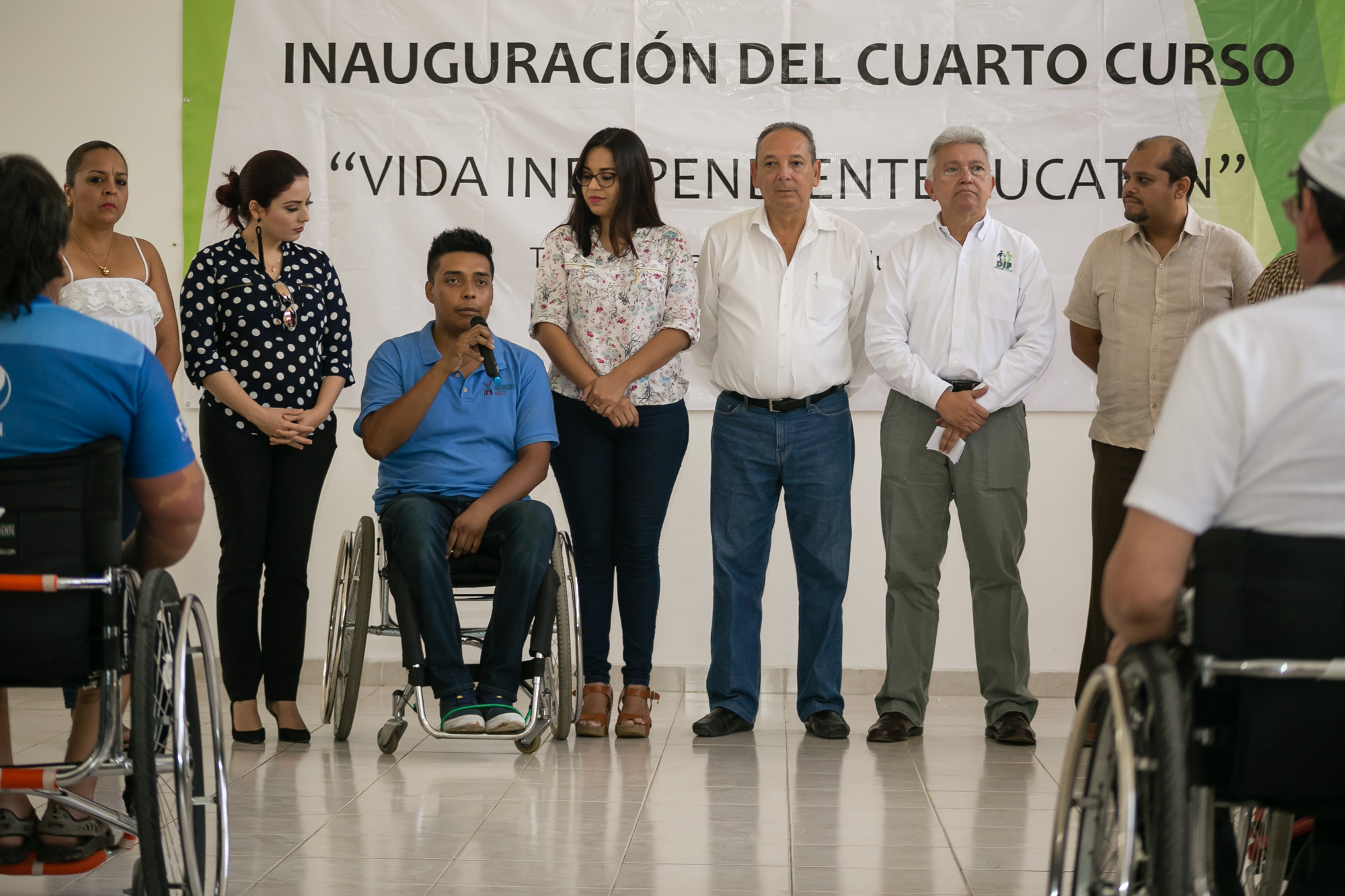 Ante la directora del DIF municipal, Patricia Aguilar Coronado, el representante de Vida Independiente en Yucatán, Raúl García Rojas, resaltó que durante esta semana las y los participantes desarrollarán técnicas que les ayudará a desenvolverse en una sociedad compleja que aún no se encuentra adaptada a las necesidades que tienen las mujeres y hombres con discapacidad.