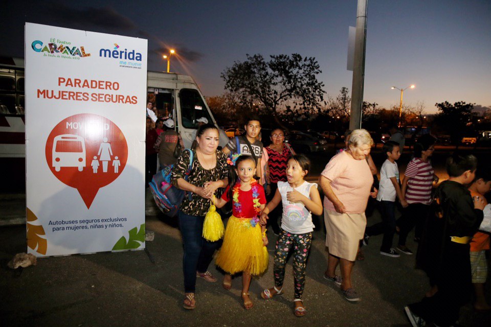 La seguridad de las mujeres, que es prioridad para la administración del alcalde Renán Barrera Concha es uno de los factores relevantes en “El Nuevo Carnaval, la Fiesta de Mérida”, ya que el Ayuntamiento puso a disposición de ellas un transporte especial, seguro y gratuito.
