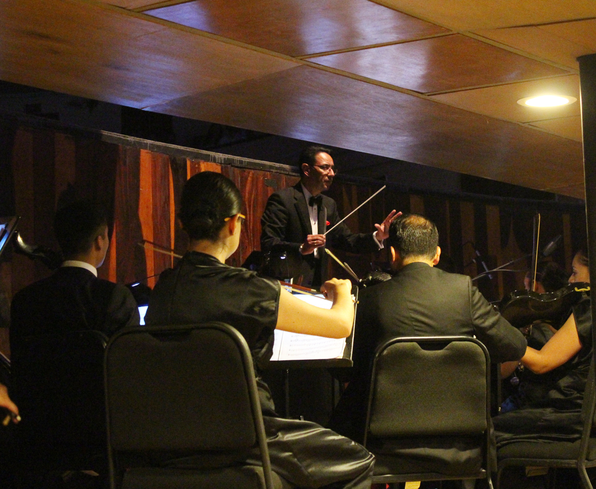 Bajo la batuta del Mayor músico Rubén Darío Estrada Corona, las agrupaciones iniciaron el recital con la obertura de El Barbero de Sevilla de Gioacchino Rossini que relata las peripecias de una pareja de enamorados. Siguieron las arias de Rossina, Basilio y “Mi par d’ esser colla testa”.