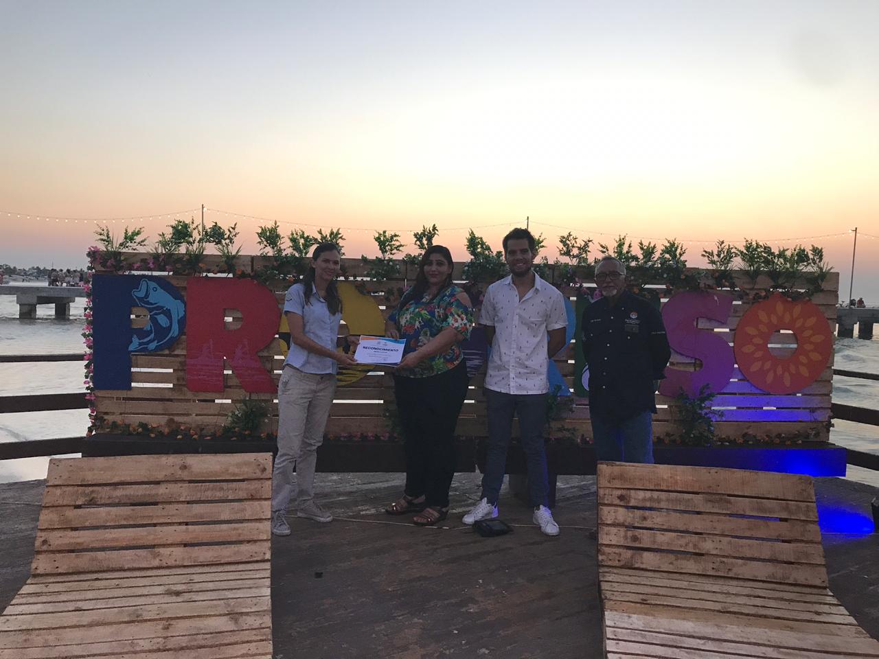 Progreso, Yucatán a 19 de abril de 2019.- El Ayuntamiento de Progreso, a través de la Dirección de Servicios Públicos y Ecología y la Dirección de Turismo y Comercio, premió anoche durante la edición de “Veladas Junto al Mar” de Semana Santa a Luis Manzano Chávez, Laura María Sánchez Tzec y Pina Ramírez Castañeda, ciudadanos que participaron en el “Desafío Progreso Limpio”, dinámica sencilla, pero significativa en pro de la limpieza del puerto.