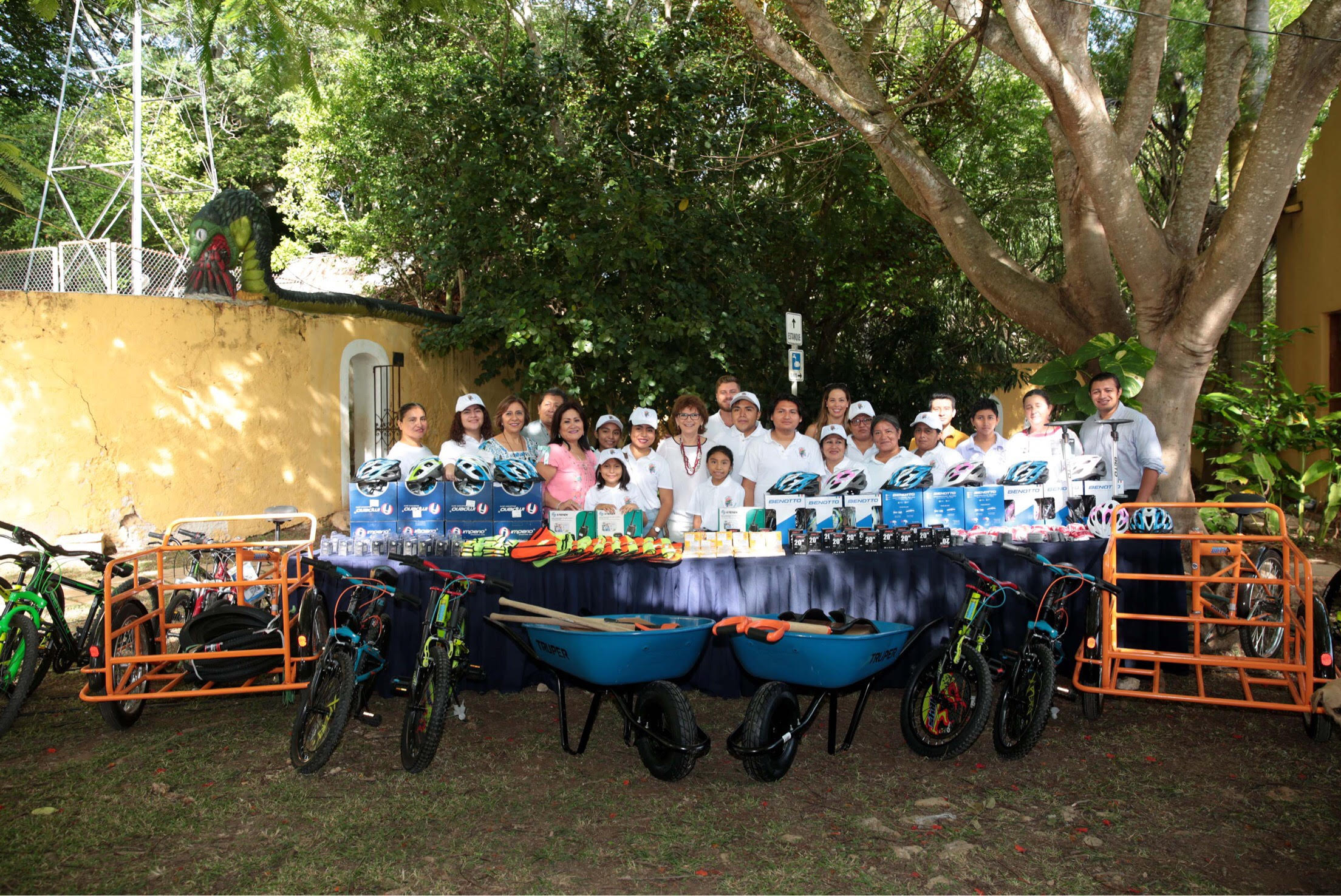 Como parte del proyecto, la presidenta municipal hizo entrega de 31 bicicletas y 8 lámparas delanteras, 2 triciclos, 3 radios portátiles, refacciones para bicicletas, 43 cascos para adultos y 30 para niños.