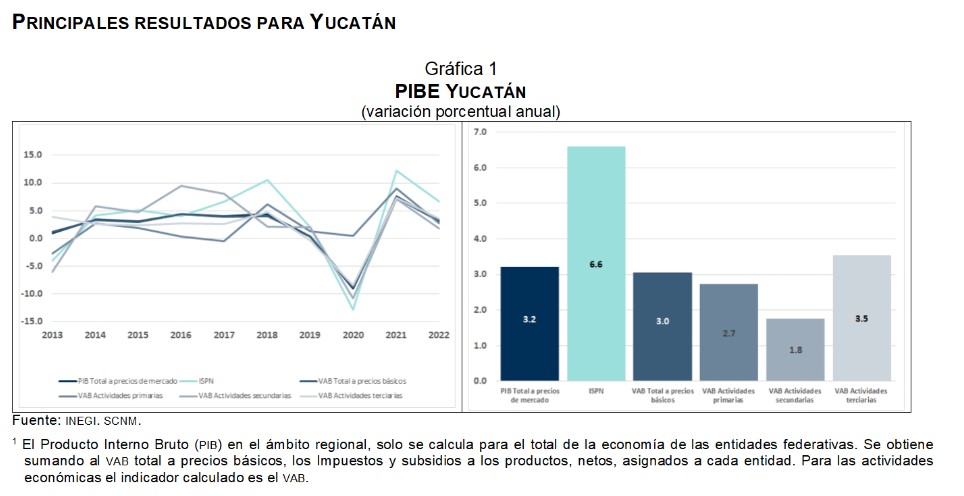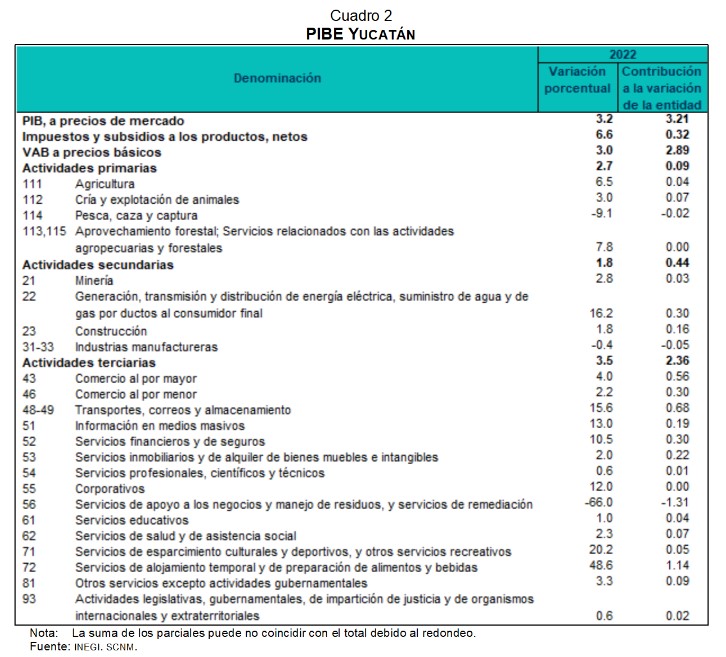 · Durante 2022, el PIB de Yucatán registró una variación a tasa anual de 3.2 por ciento.