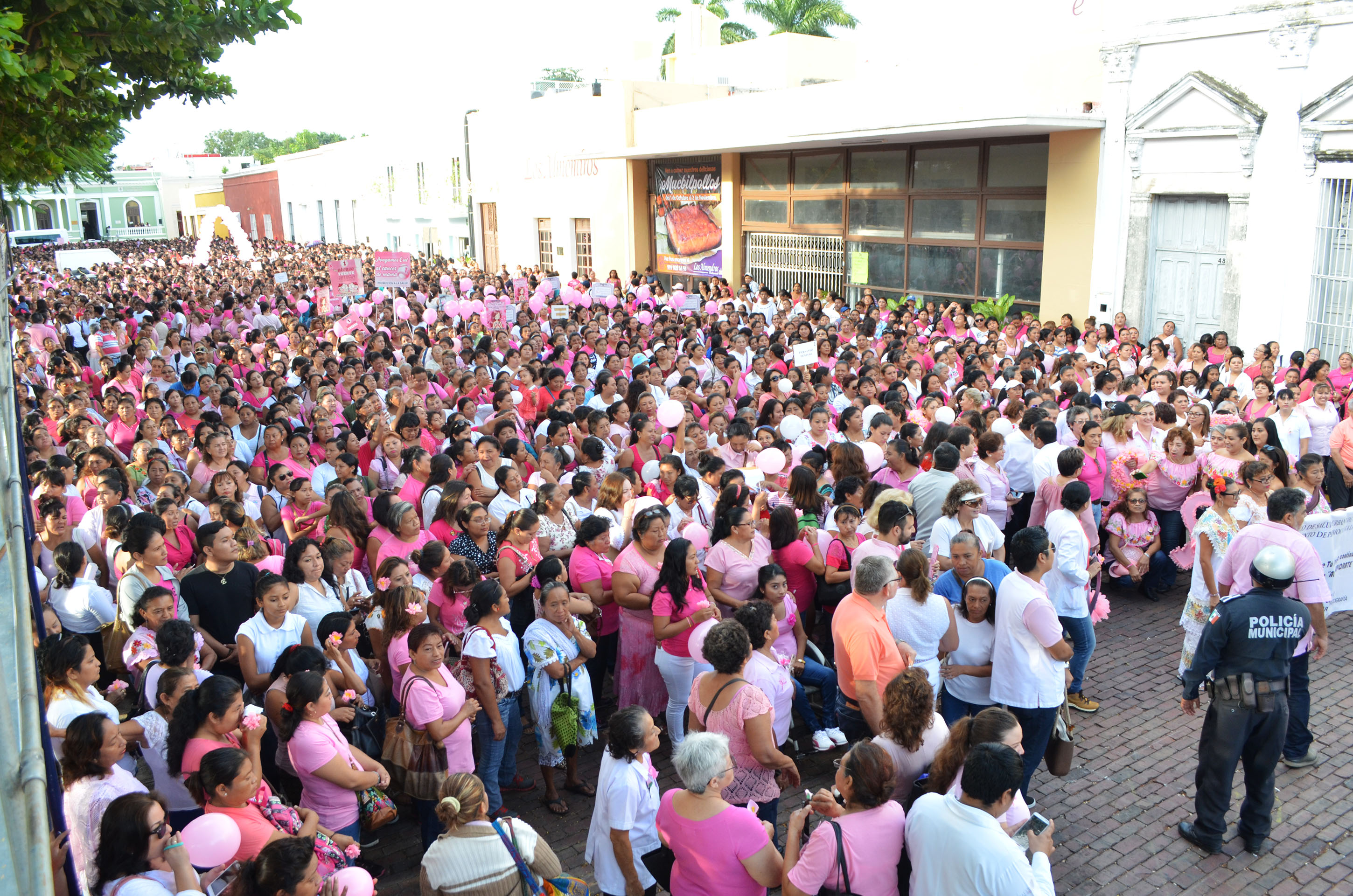 Mérida, Yucatán, 19 de octubre de 2018.- Más de cinco mil mujeres y hombres marcharon en las inmediaciones del Centro Histórico de esta ciudad, con la participación de autoridades del Gobierno de Estado y organizaciones de la sociedad civil, en el marco del Día Internacional de la Lucha Contra el Cáncer de Mama.