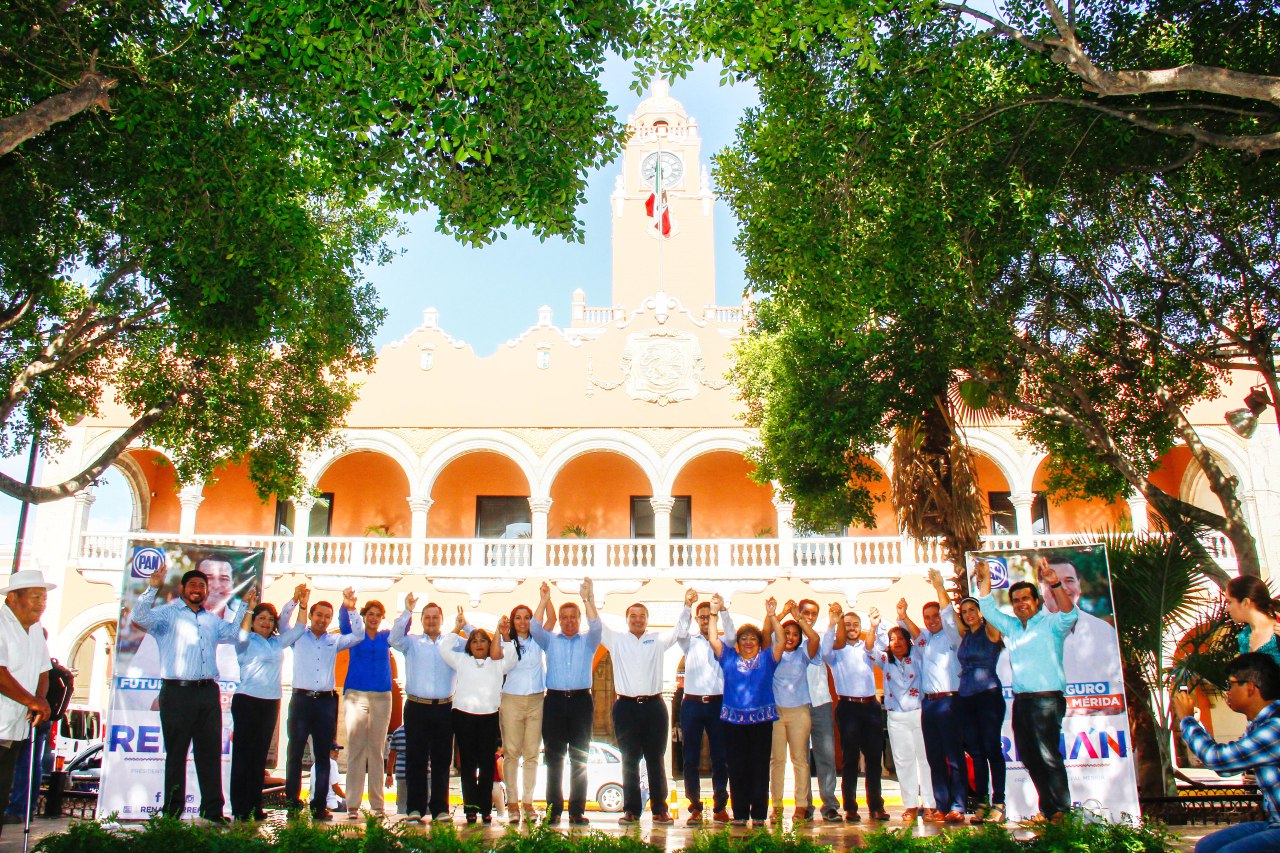 Mérida, Yucatán, 2 de abril de 2018.- Teniendo como marco el Palacio Municipal, Renán Barrera Concha, candidato común por el PAN y Movimiento Ciudadano a la alcaldía de Mérida, arrancó de manera oficial su campaña “Futuro Seguro”, con la presentación de seis ejes de acción que dan respuesta a los desafíos actuales de la ciudad, que se encuentra en un momento de desarrollo y progreso gracias a la continuidad de los buenos gobiernos, y según palabras de Renán Barrera: “Hay que aprovechar este desarrollo para que crezcamos ordenado y con igualdad de oportunidades para todos y ello implica pensar la ciudad a mediano y largo plazo”.