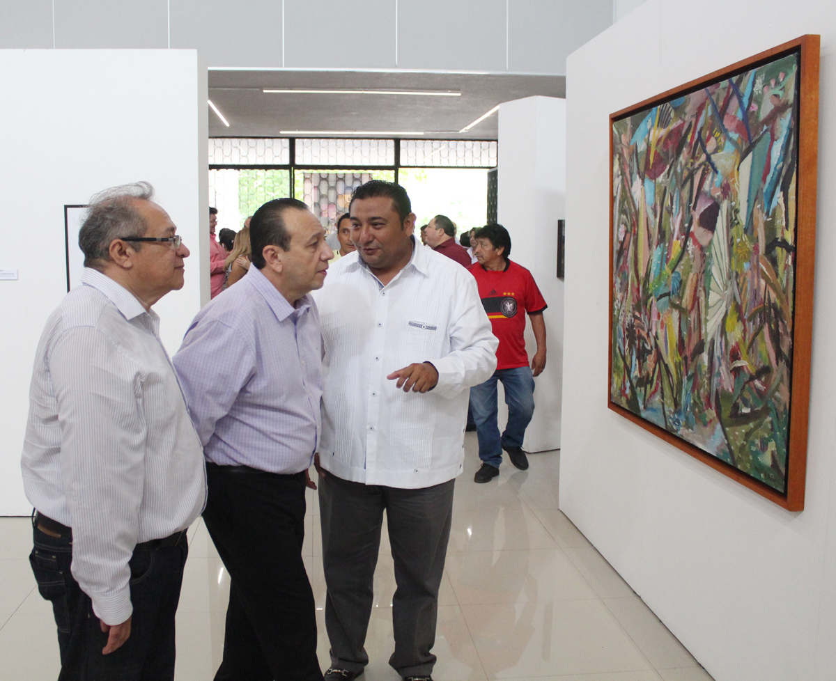 Mérida, Yucatán, 9 de agosto de 2018.- Una selección de 25 obras de 20 artistas, en la que se puede apreciar gran diversidad de estilos y técnicas, integra la exposición colectiva Patrimonio visual de Yucatán. Bienales locales y nacionales, inaugurada esta mañana en el Salón de Creadores “Manuel Lizama Salazar”.