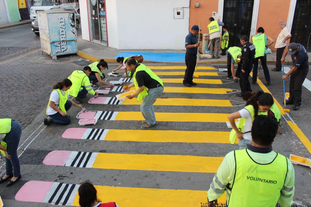 En un esfuerzo conjunto entre el Instituto Municipal de Planeación, la Policía de Municipal de Mérida y la empresa CEMEX el día de ayer se procedió a pintar el primer Paso Peatonal Artístico del municipio de Mérida en el cruce de la calle 57 por 50.
