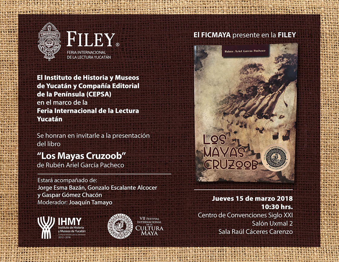 “Los Mayas Cruzoob” se presentará el próximo 15 de marzo, a las 10:30 hrs., en el Salón Uxmal 2, sala Raúl Cáceres Carenzo, del Centro de Convenciones Siglo XXI. La presentación estará a cargo del autor, junto con Jorge Esma Bazán, Gonzalo Escalante Alcocer y Gaspar Gómez Chacón. El moderador será Joaquín Tamayo.