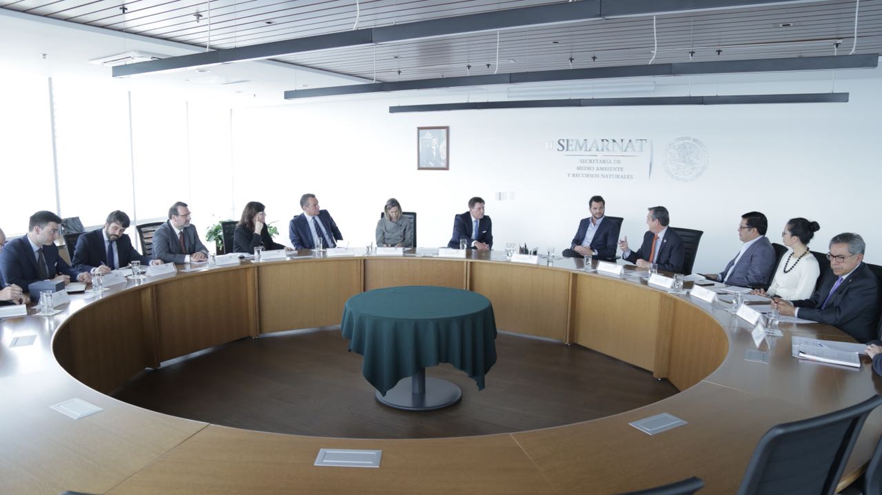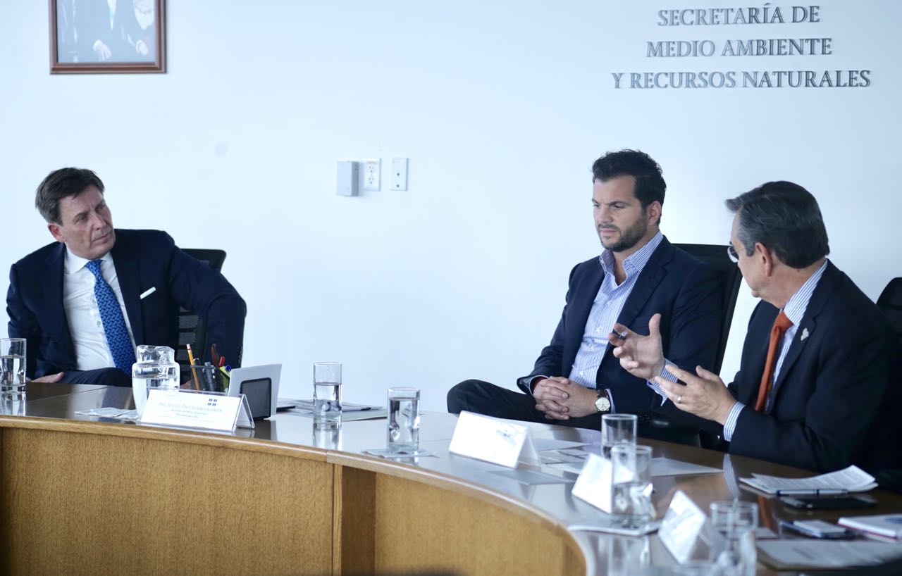 El Ministro de Energía y Recursos Naturales de Québec, Excmo. Sr. Pierre Moreau, se reunió con el Secretario de Medio Ambiente y Recursos Naturales, Rafael Pacchiano Alamán, para explorar la futura colaboración en la conservación de áreas naturales protegidas, e incentivar las actividades económicas para beneficio de las poblaciones locales, así como explorar la participación de sectores productivos --como energía o transporte-- en el sistema de comercio de emisiones.