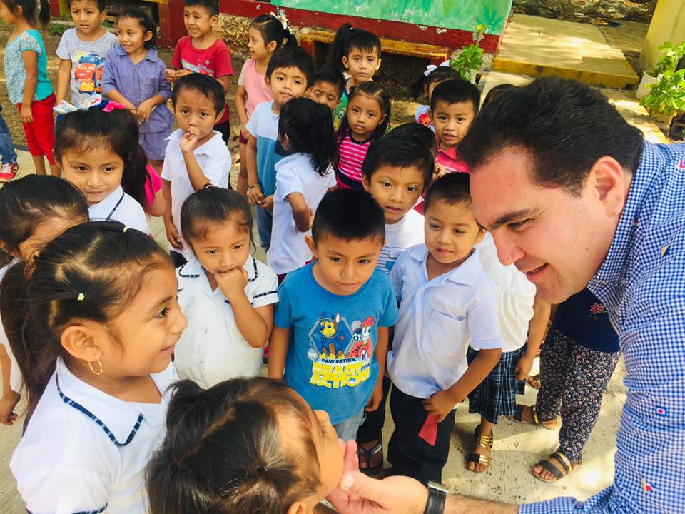 El legislador federal estuvo especifiamente en la escuela primaria Josefa Ortiz de Domínguez, de Yalcón; la preescolar indígena José de San Martín, de Tixhualactún, la preescolar indígena y la primaria José María2 Iturralde y Traconis, de Kanxoc.
